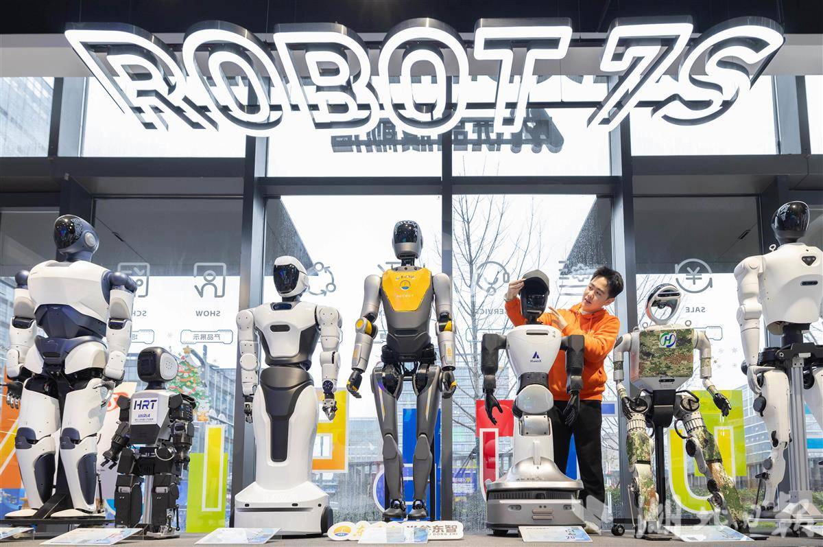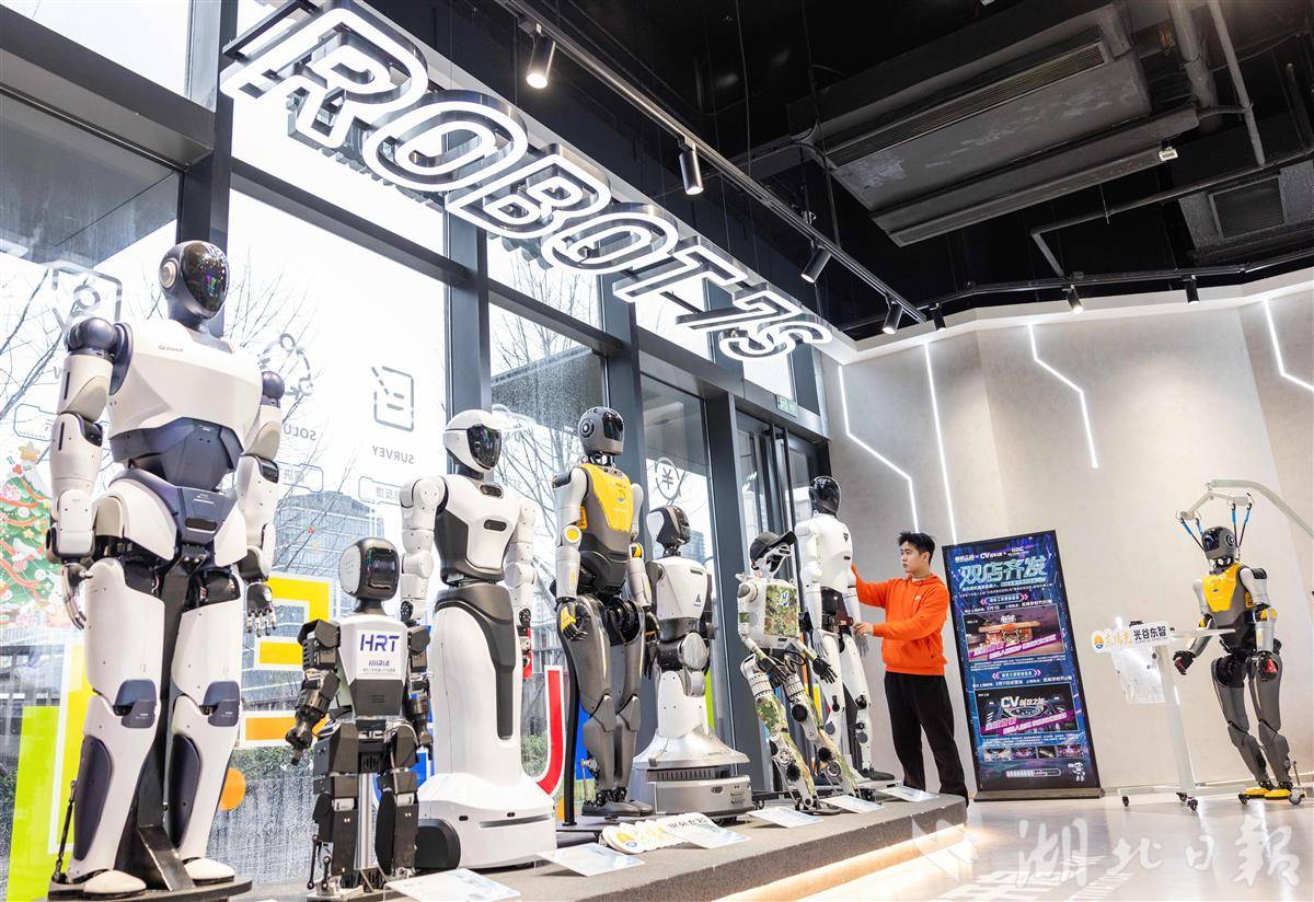 1月19日,全国首家光谷人形机器人 7S 店内,工作人员正有序整理陈列人形机器人及各类 AI 潮品。这家依托光谷科创生态打造的门店,集展示、销售、服务等 7 大功能于一体,既为前沿科技落地消费场景搭建高效平台,更成为武汉新晋热门打卡地,吸引市民游客沉浸式触摸科技前沿魅力。(湖北日报全媒记者 薛婷 摄)