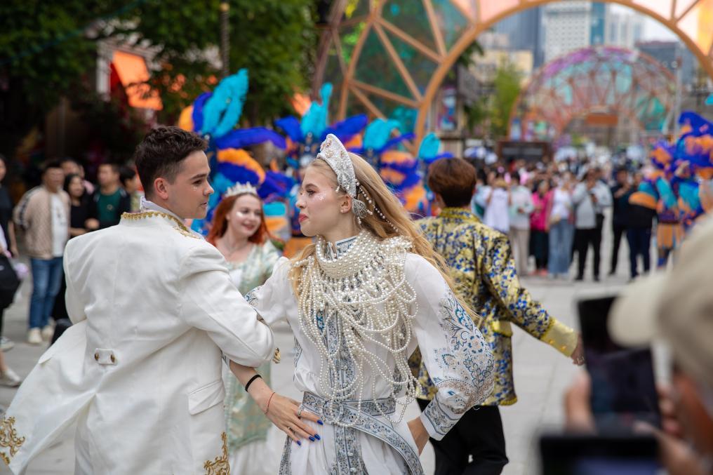 游客在大连俄罗斯风情街欣赏表演(2024年5月25日摄)。新华社记者 李旭伦 摄