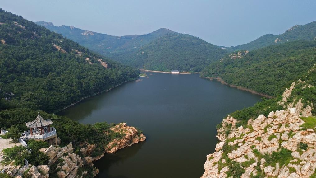 2023年8月16日拍摄的大连市广鹿岛老铁山森林公园仙女湖(无人机照片)。新华社记者 陈为 摄