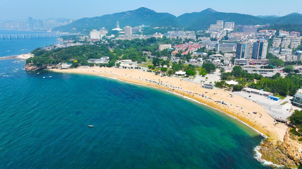 这是2024年6月17日拍摄的大连傅家庄海滨浴场(无人机照片)。新华社记者 杨青 摄