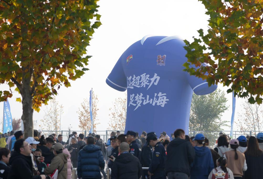 2025年11月15日,球迷到大连梭鱼湾足球场观看比赛。新华社记者 李钢 摄