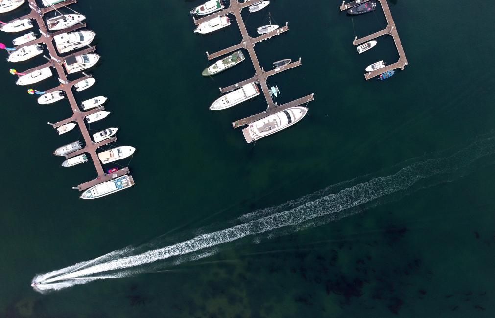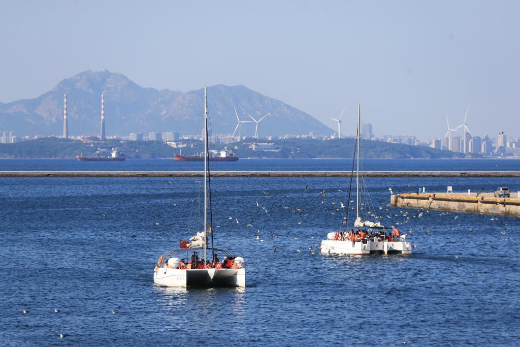 游客在辽宁大连东港商务区附近海边乘船出海游玩(2024年6月16日摄)。新华社记者 杨青 摄