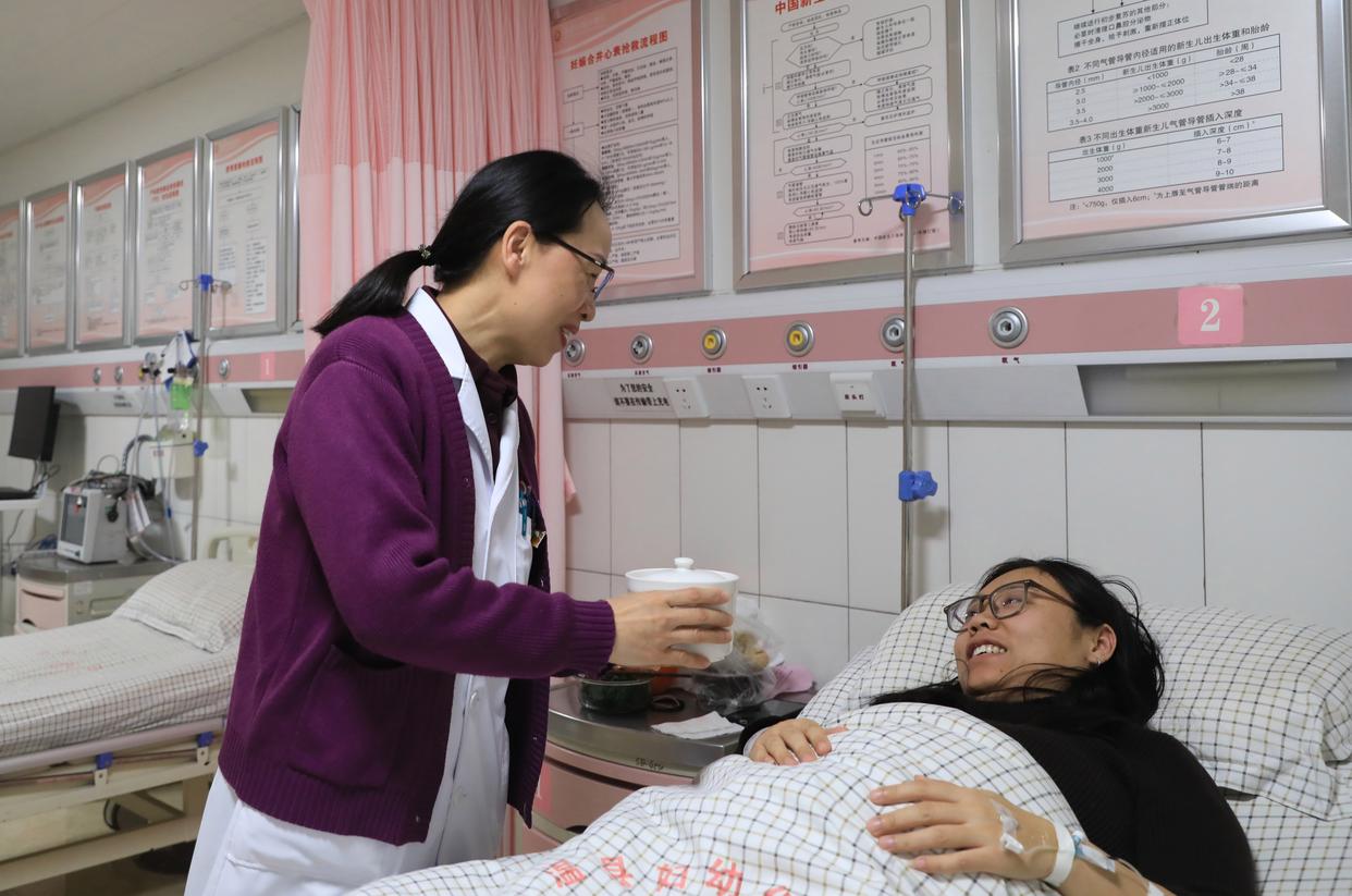 1月26日,河南省焦作市温县妇幼保健院的医护人员给患者送腊八粥。新华社发(黄福兴 摄)