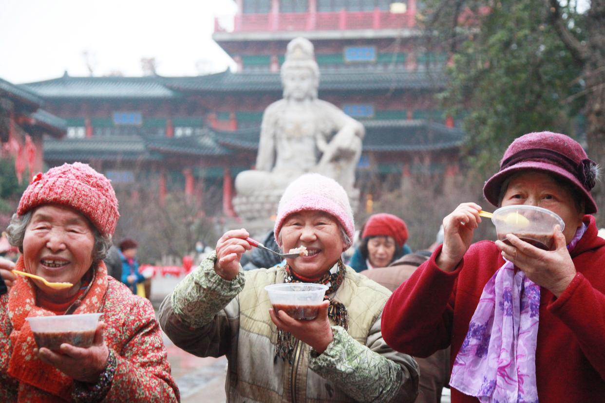 1月26日,市民在江苏省南京市毗卢寺品尝腊八粥。 新华社发(刘建华 摄)