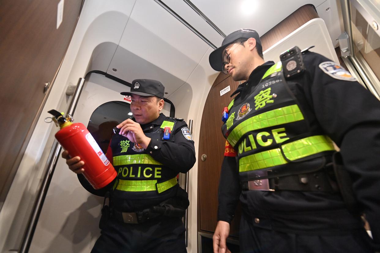 2月2日凌晨,南宁铁路公安局南宁公安处长岗岭站派出所民警在南宁动车所巡逻,认真检查各种设施安全情况,守护即将开启的2026年春运。南宁动车所日常主要承担动车组一、二级检修、临修、外皮清洗、吸污作业、检修设备与信息化系统维护等任务。南宁铁路公安局南宁公安处长岗岭站派出所民警负责这里的安全守护,春运期间,他们坚守岗位,做好“陆地舰队”安全的“守夜人”。