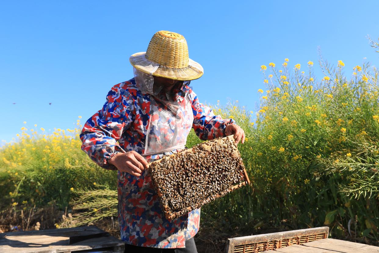 2月4日,养蜂专业户在云南省腾冲市明光镇凤凰村养蜂场查看蜂箱。新华社发(龚祖金摄)