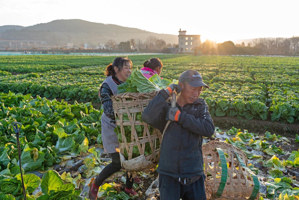 2月4日,农民在云南省曲靖市沾益区西平街道一处农田里收获大白菜。新华社发(杨俊鹏摄)