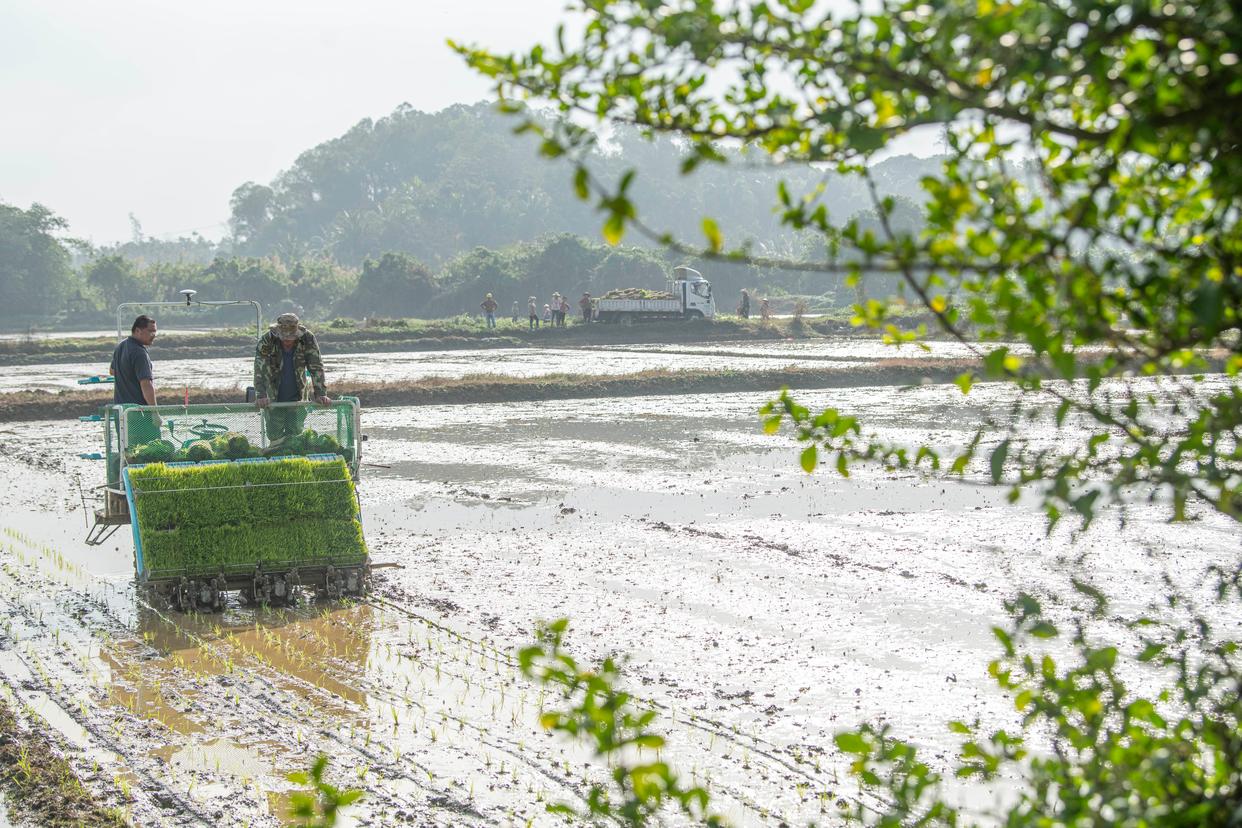 2月4日,海南省琼海市嘉积镇农民在田间插秧。新华社发(蒙钟德摄)
