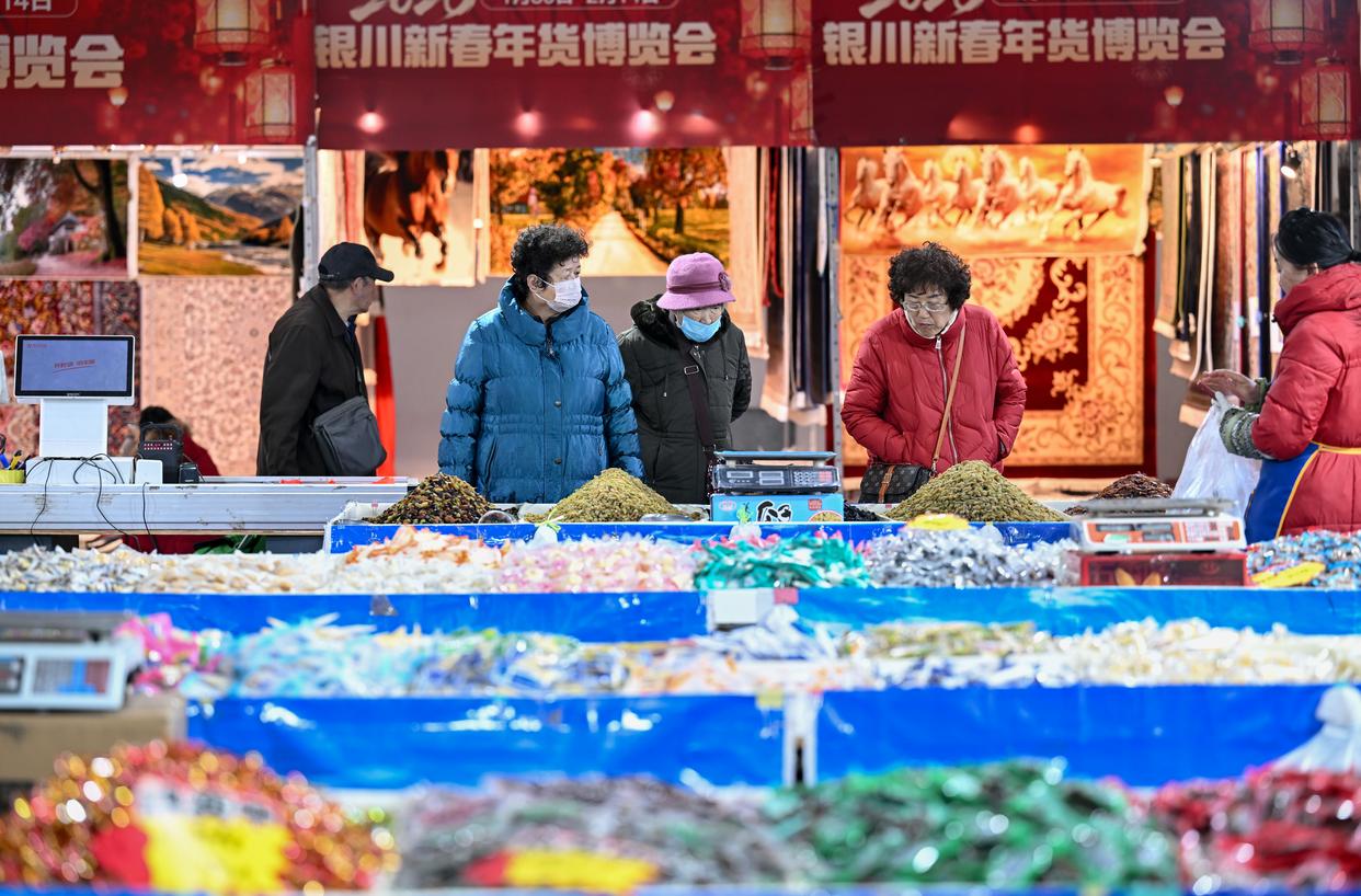 2月5日,在2026银川新春年货博览会现场,市民选购干果特产。新华社记者 冯开华 摄