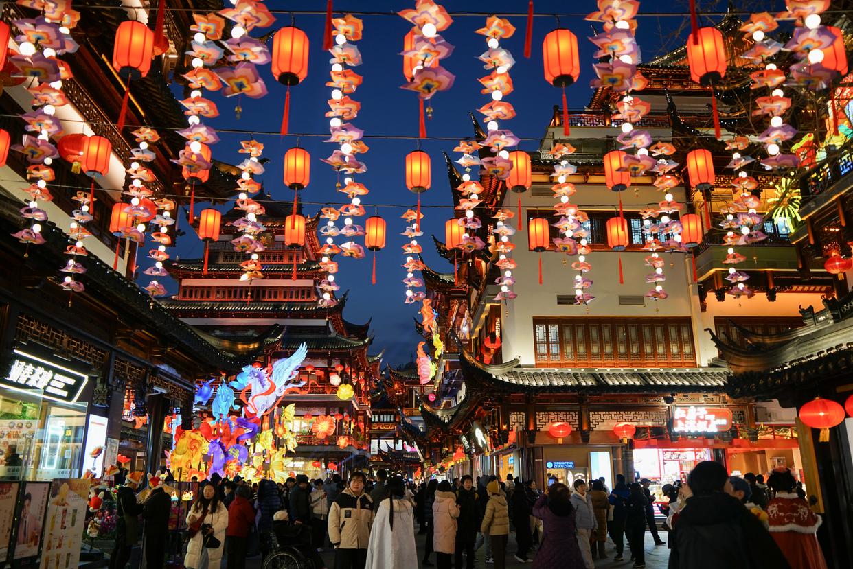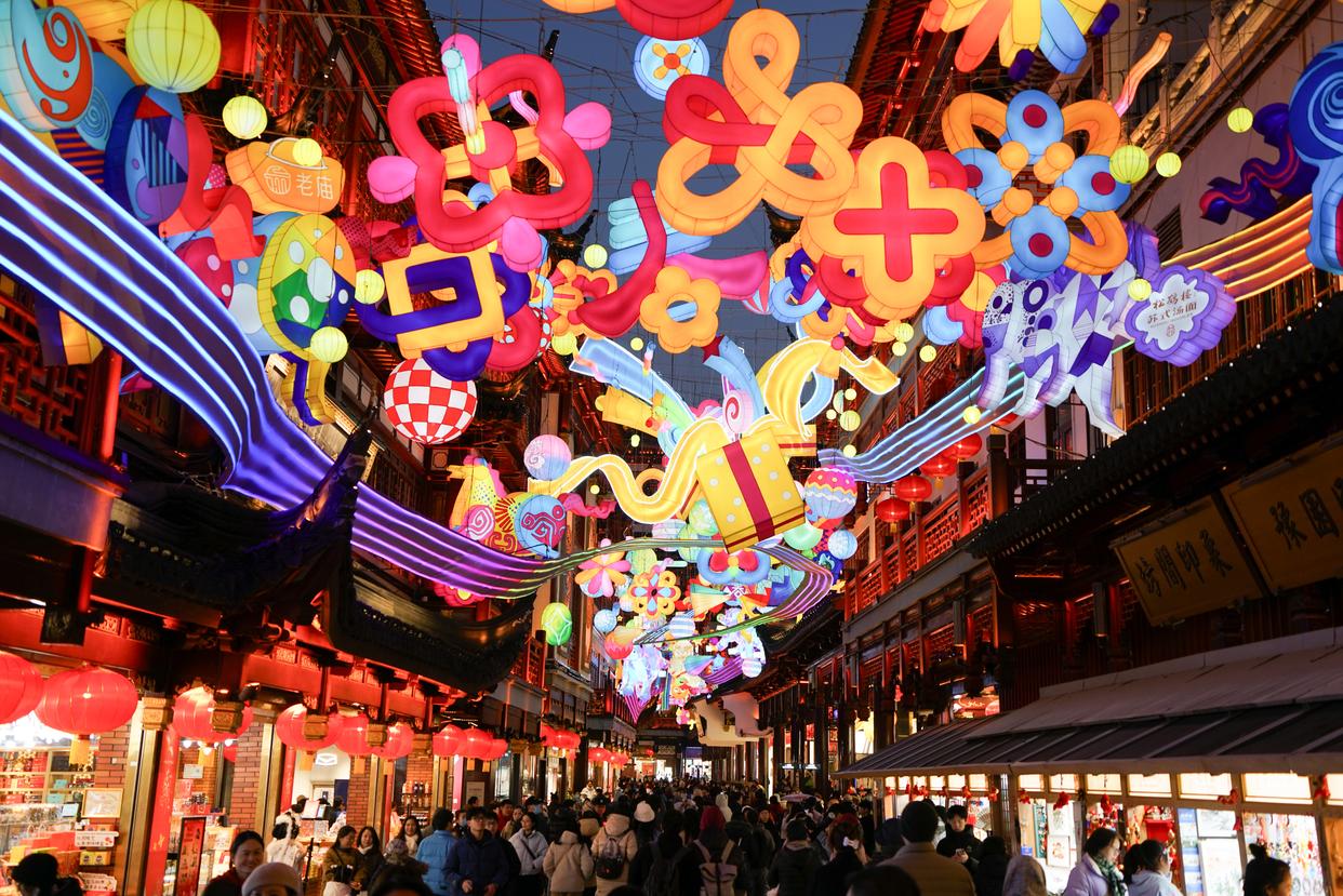 ↑2026年1月27日在上海市黄浦区拍摄的豫园灯会。CICPHOTO/王冈 摄