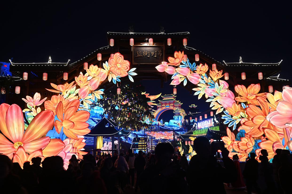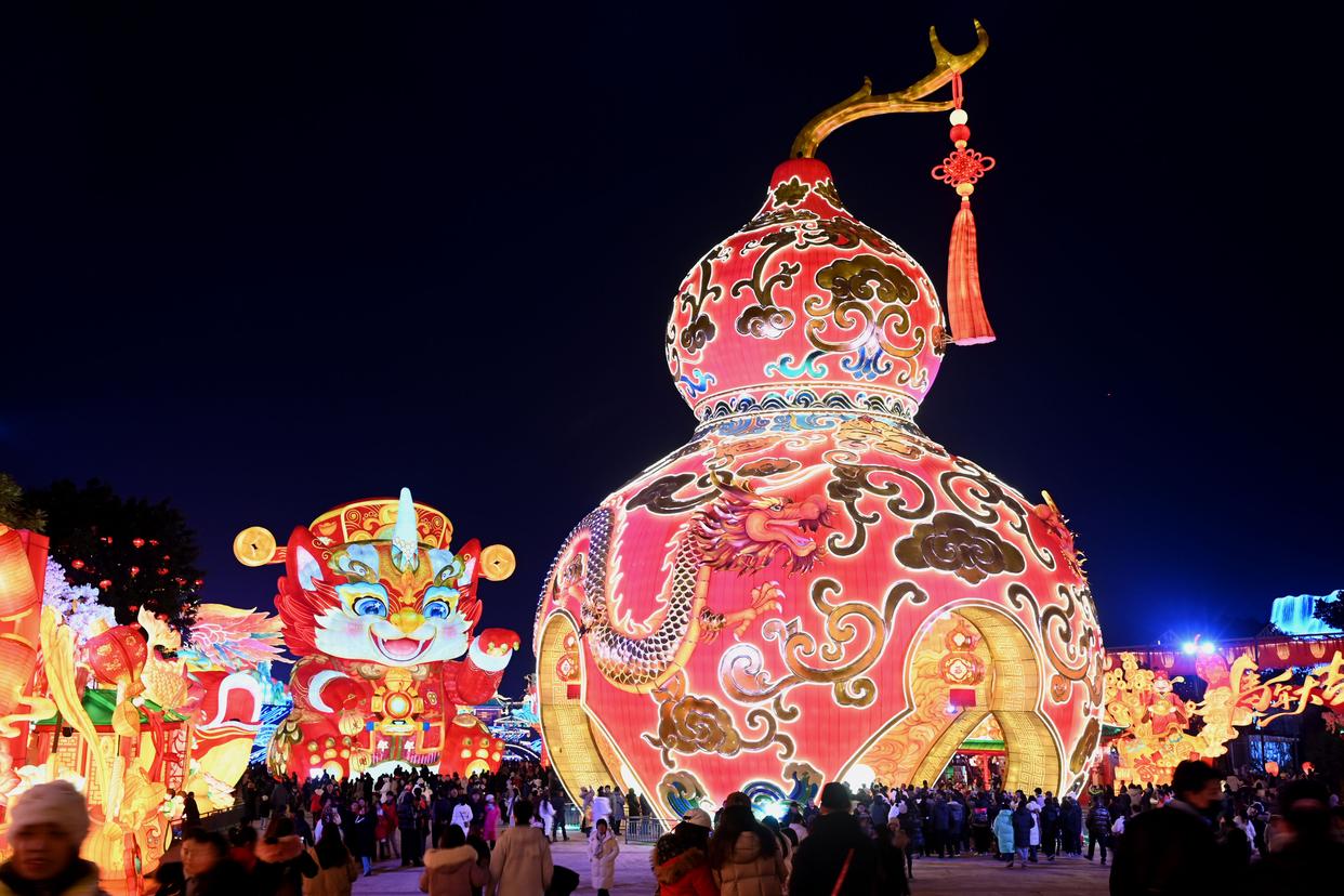 农历新年将至,各地点亮五彩花灯,扮靓夜晚,吸引大批游客参观赏玩。