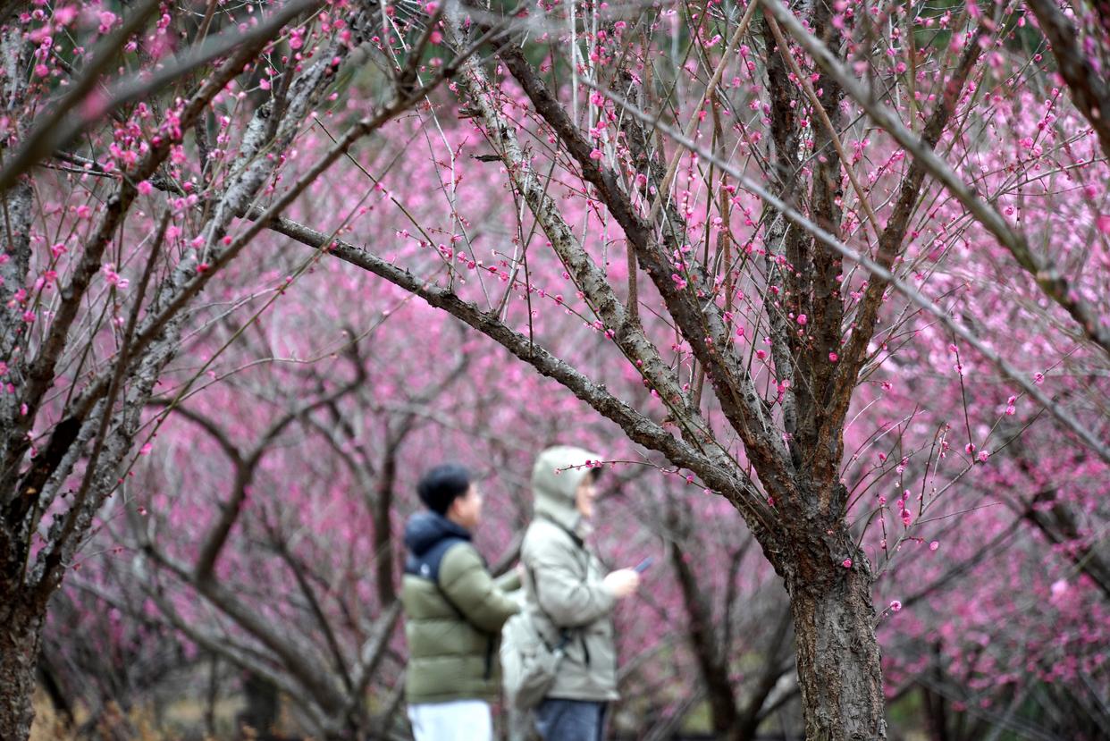 2月4日,市民在河南省洛阳市隋唐城遗址植物园游园赏花。新华社发(高山岳摄)