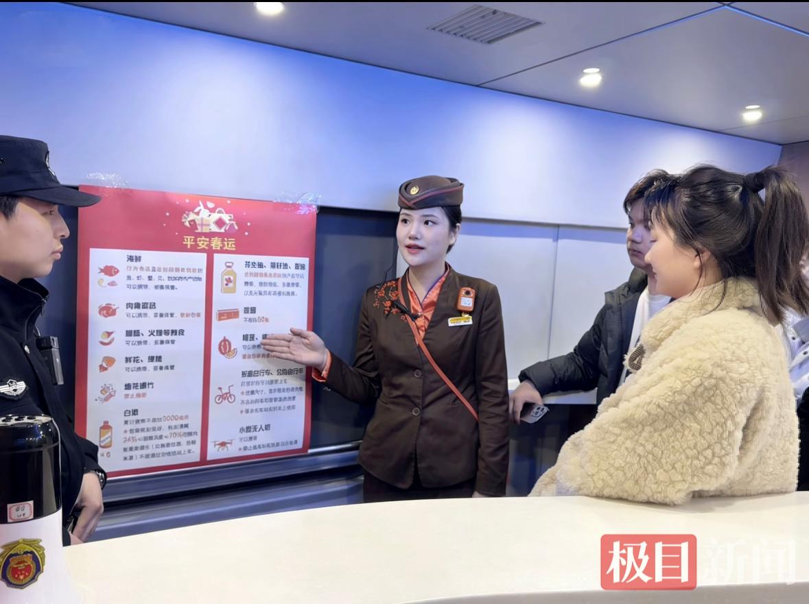 随着春运客流量持续攀升,为守护旅客出行安全、保障列车运行秩序,2月8日,在从汉口站开往上海南站的D105次列车上,乘务班组开展了春运禁带物品专项宣讲活动,让安全出行知识深入人心。