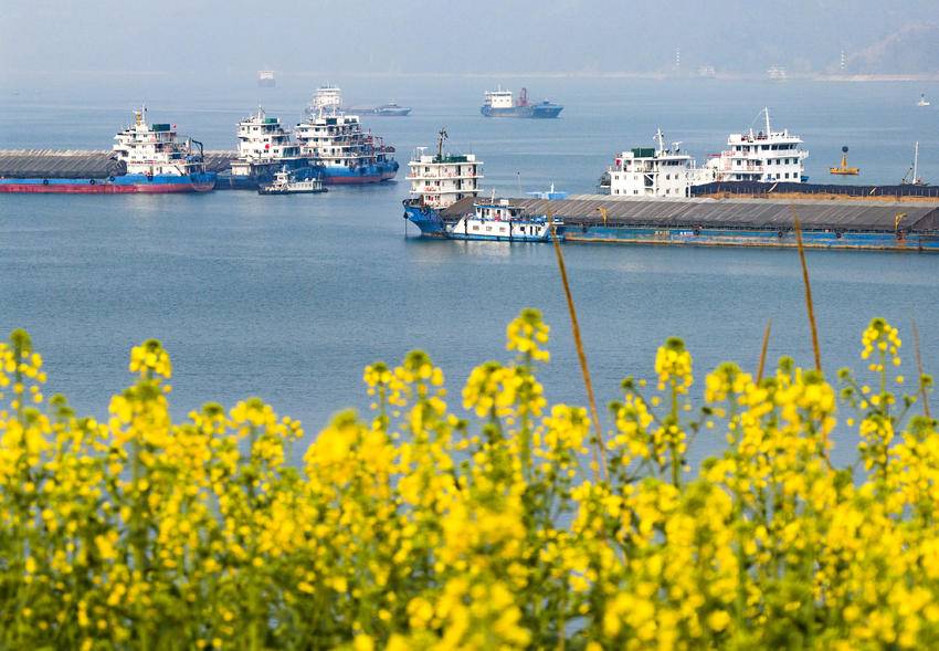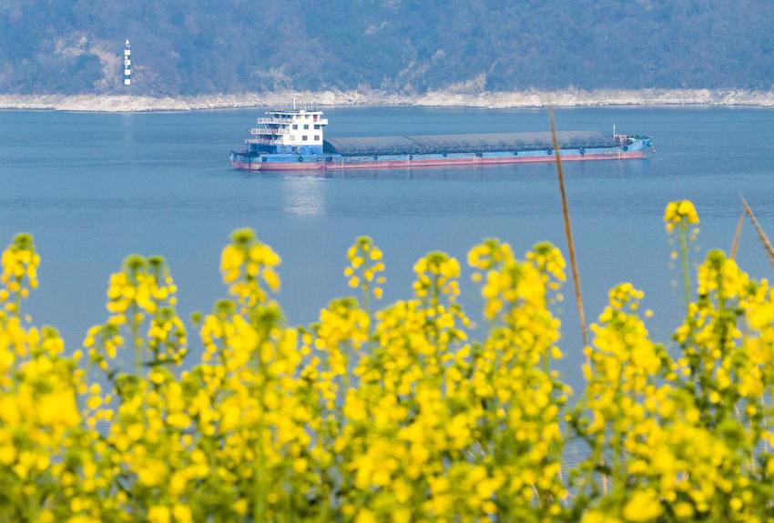 湖北日报客户端讯(通讯员吴承忠)时下,长江三峡地区春风送暖,峡江两岸的油菜花次第开放,美不胜收。图为2026年2月8日,船舶航行在长江三峡西陵峡湖北省宜昌市秭归县茅坪镇水域。
