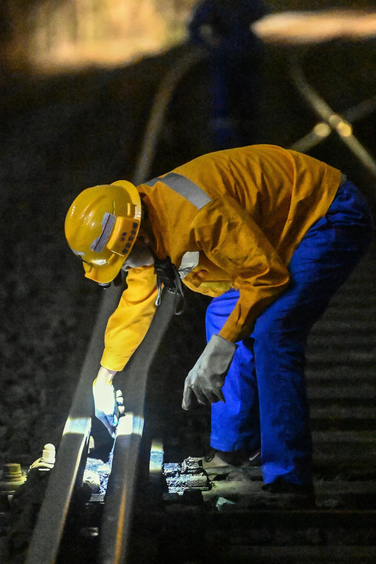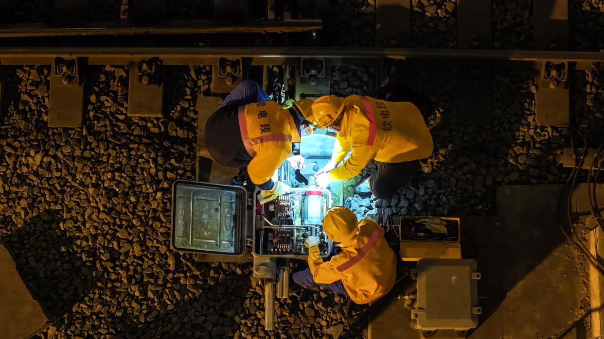 春节临近,中国铁路南宁局集团有限公司的工人在每个凌晨无列车通过的时间段内坚守作业,铲除顽固油泥,检修调试道岔,排查信号机隐患,精准巡查筑牢“安全防线”,护航铁路春运安全。