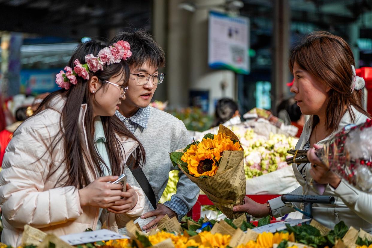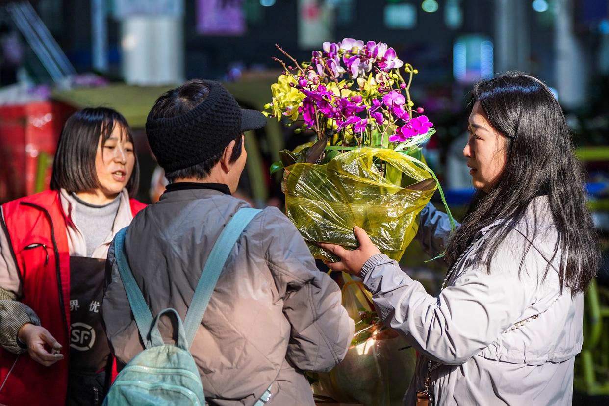 2月10日,人们在斗南花卉市场内选购鲜花。新华社记者 彭奕凯 摄