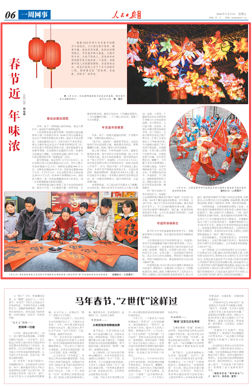 人民网报道关注年俗的教育意义。报道称,诸多年俗都蕴藏着可触可感的教育契机:扫尘,不只是清洁庭户,也是教导孩子除旧布新的生活态度;贴春联、剪窗花,在笔墨与纸刃间,传递的是汉字之美、吉祥之愿……这些浸润日常的礼俗,是以文化人的生动课堂,帮助孩子构建对家庭、传统与根源的认知,塑造着他们的文化认同与精神气象。