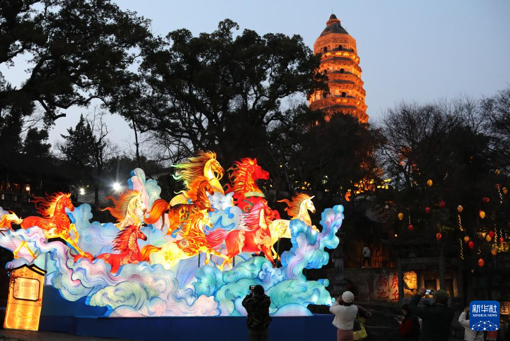 2月10日,人们在河南省三门峡市陕州区地坑院景区欣赏花灯。
