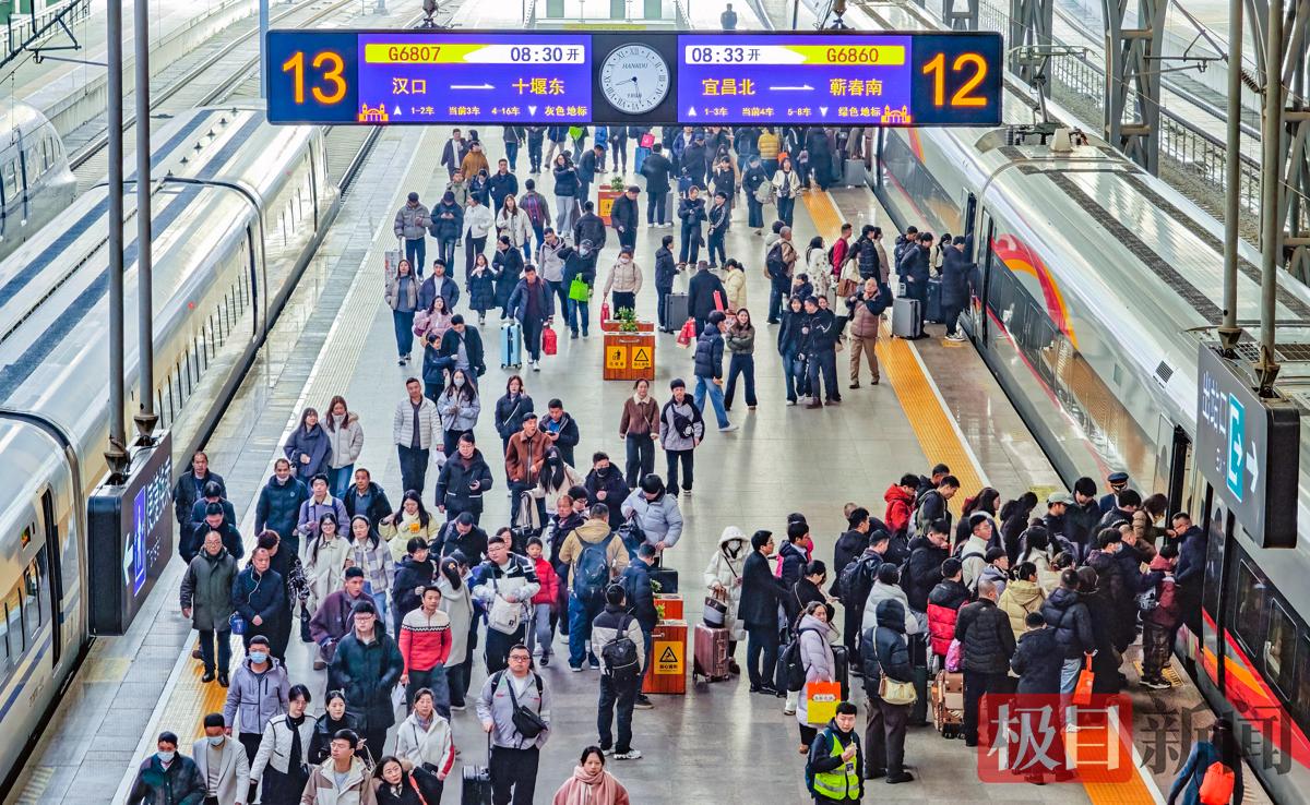 2026年春运汉口站预计发送旅客407.7万人次,比2025年春运同期增长了5.1%。汉口站节前客流高峰在2月13日至2月14日,节后出现双高峰,分别是2月23日,预计发送旅客11.8万人次,3月7日,预计发送旅客11.8万人次。客流呈现方向性、阶段性运能紧张,客流主要成分为务工学生和探亲客流,直通主要为北京、上海、杭州、南京、广州、深圳、成都、重庆等方向,国内主要为武汉、湖北省内其他各地间。节前与直通客流到达、管内客流以武汉地区出发为主。节后以直通客流出发、管内客流到达武汉地区为主。