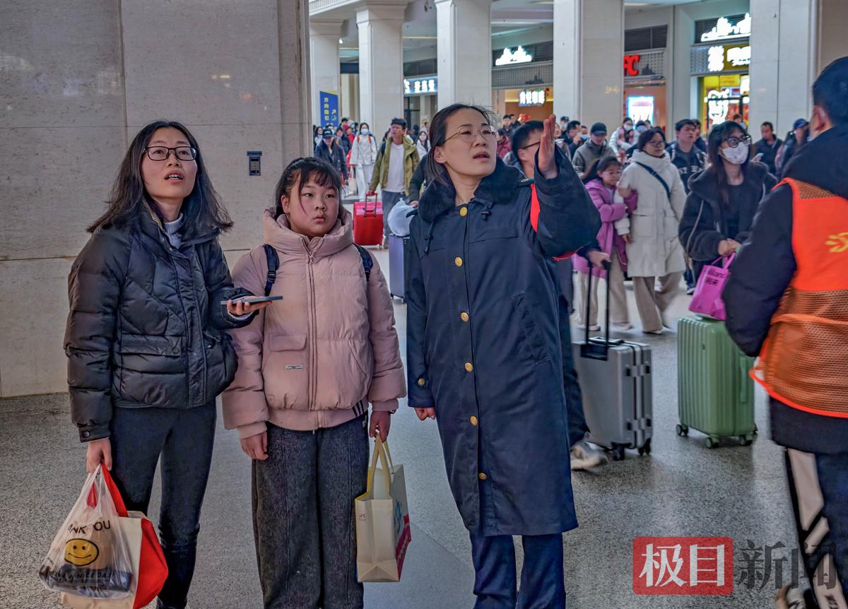 针对春运客流高峰,汉口站将地面出站通道临时调整为进站通道,持续加强客运工作人员对客流组织,引导旅客有序排队,积极发挥“心连心”服务台联动作用,做好“老、幼、病、残、孕”重点旅客的预约服务。今年春运期间,汉口站还出动党员突击队员450余人次,武铁“小桔灯”志愿者800余人次,在进站通道、乘降电梯、服务台等关键岗位,为旅客朋友提供引导助行服务,让春运出行体验更美好。