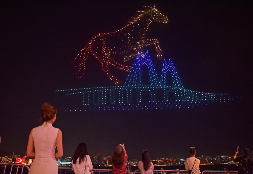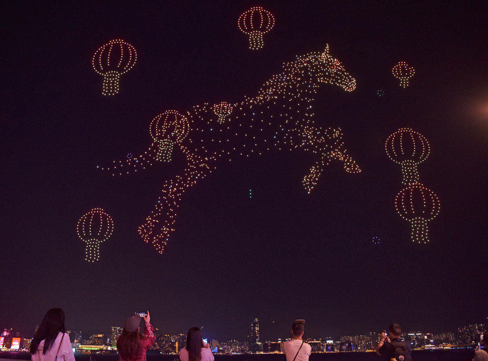 2月14日,由2026架无人机呈现的大型无人机表演在香港湾仔海滨闪亮登场,为即将到来的马年新春增添喜庆祥和的节日气氛。