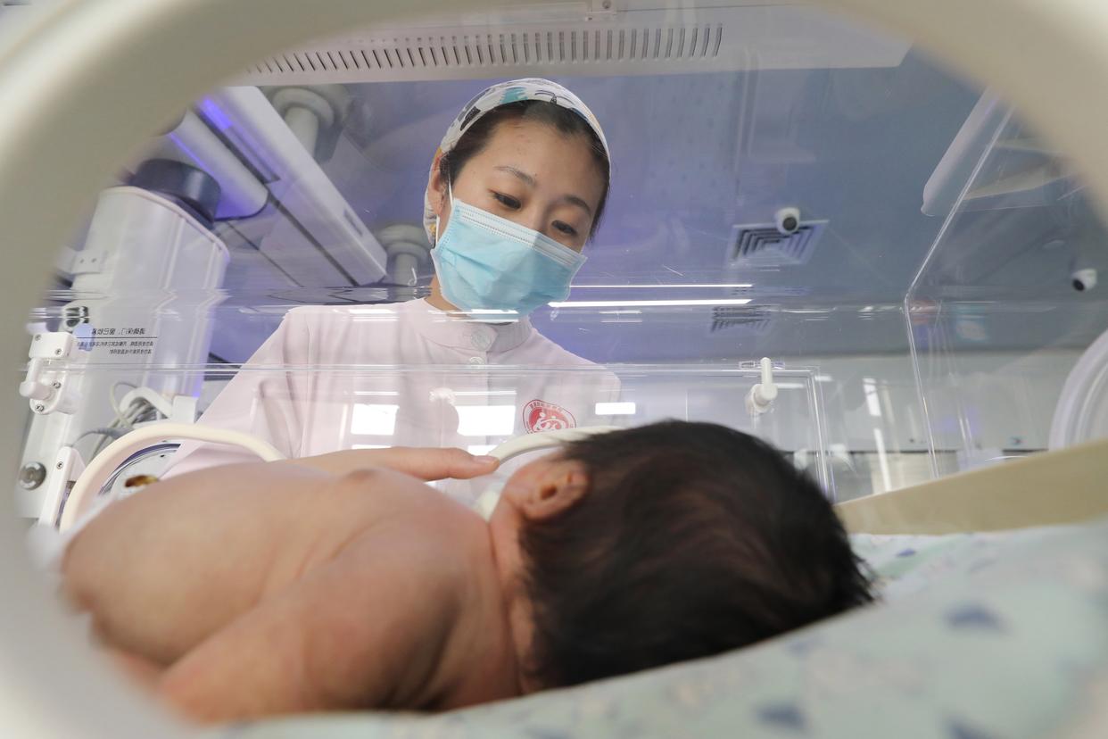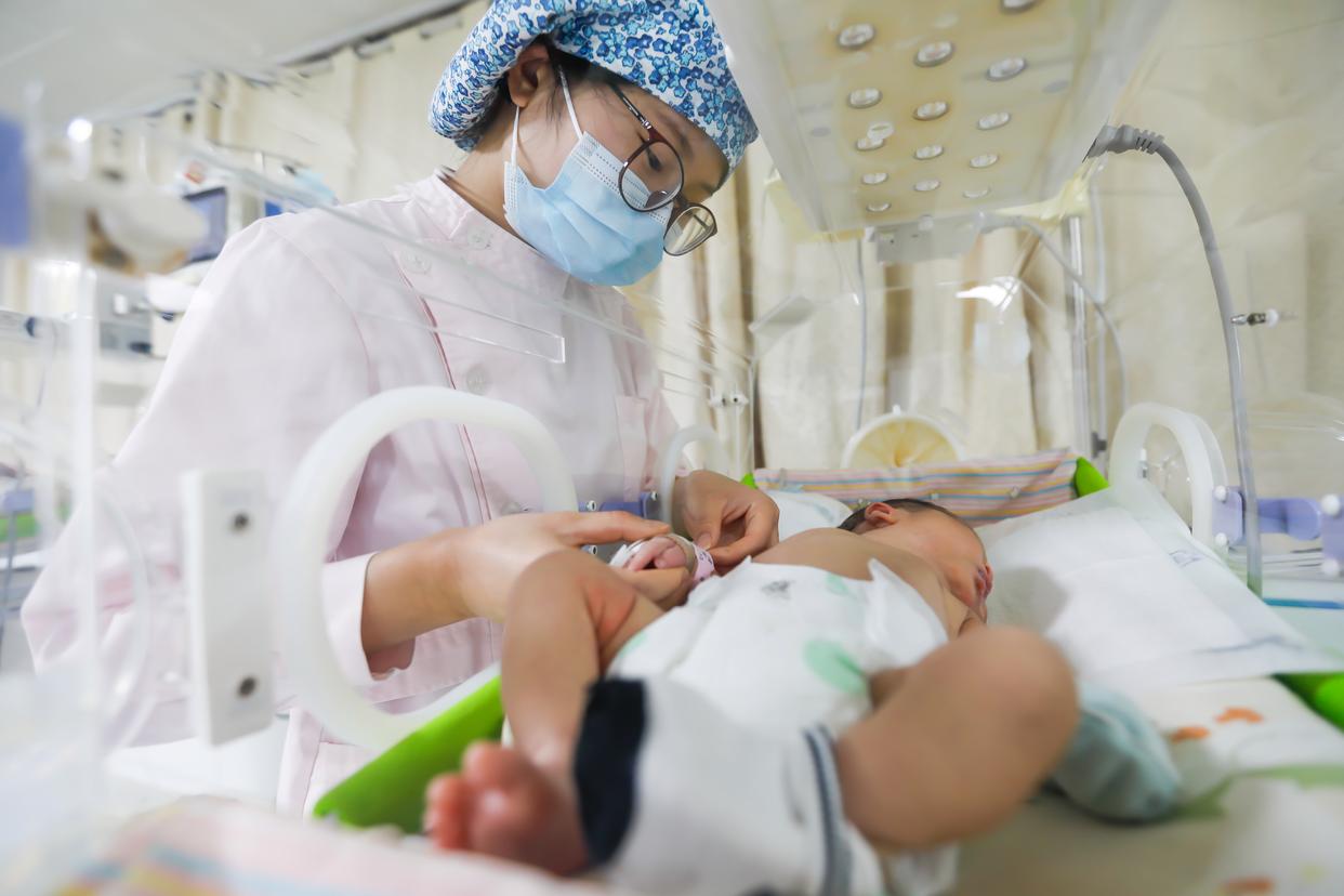 2月17日,在河南省武陟县木城街道的武陟济民医院新生儿科,护士护理新生儿。新华社发(王琳锋摄)