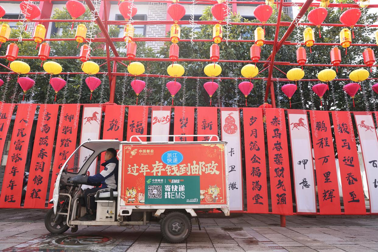 2月17日,快递员在浙江省湖州市德清县乾元镇派送快递。新华社发(倪立芳摄)