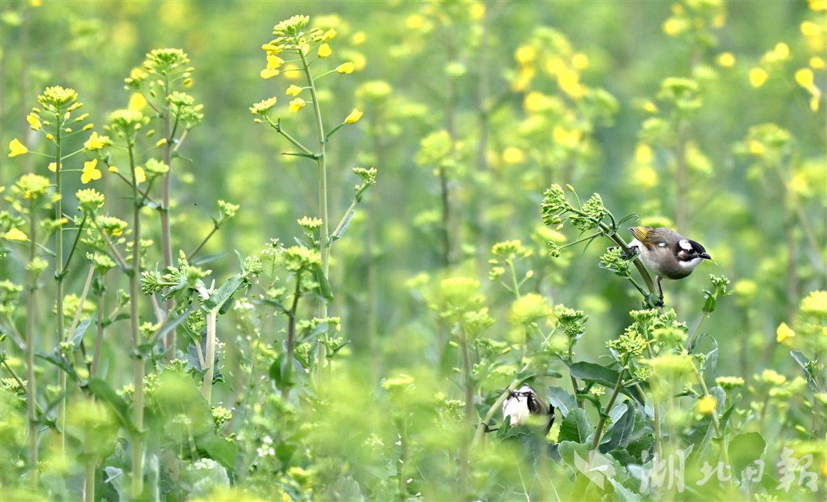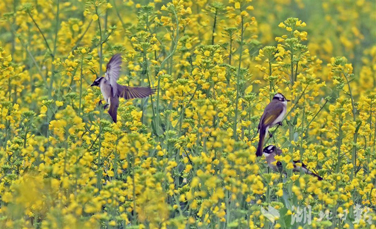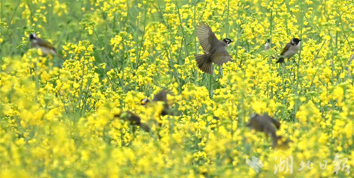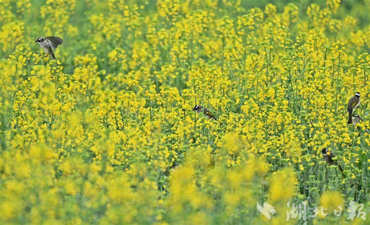 清晨时分,薄雾尚未散尽,各类小鸟翩跹而至,在金黄的油菜花间穿梭嬉戏、婉转啼鸣,清脆的鸟鸣与淡淡的花香交织在一起,构成一首悦耳的春日生态乐章。(湖北日报全媒记者刘曙松摄)