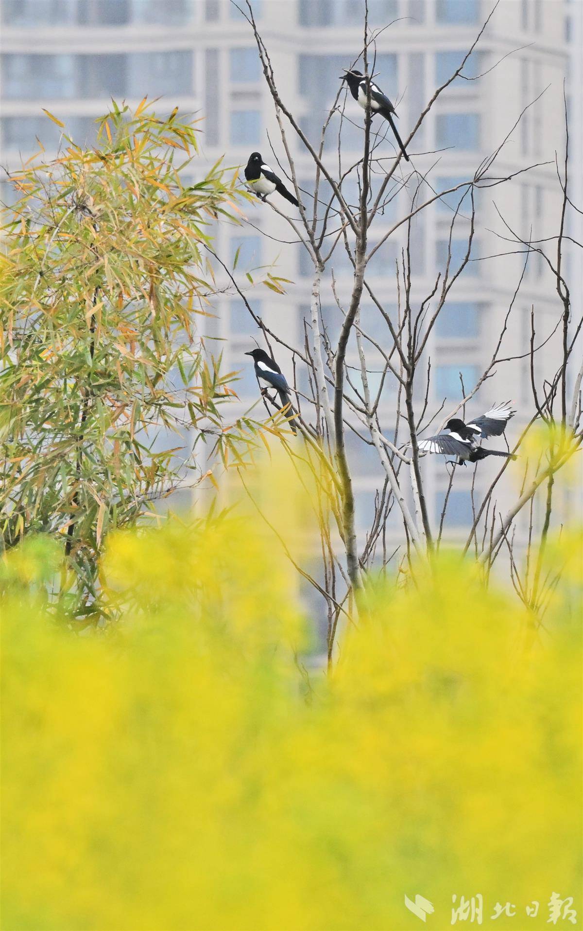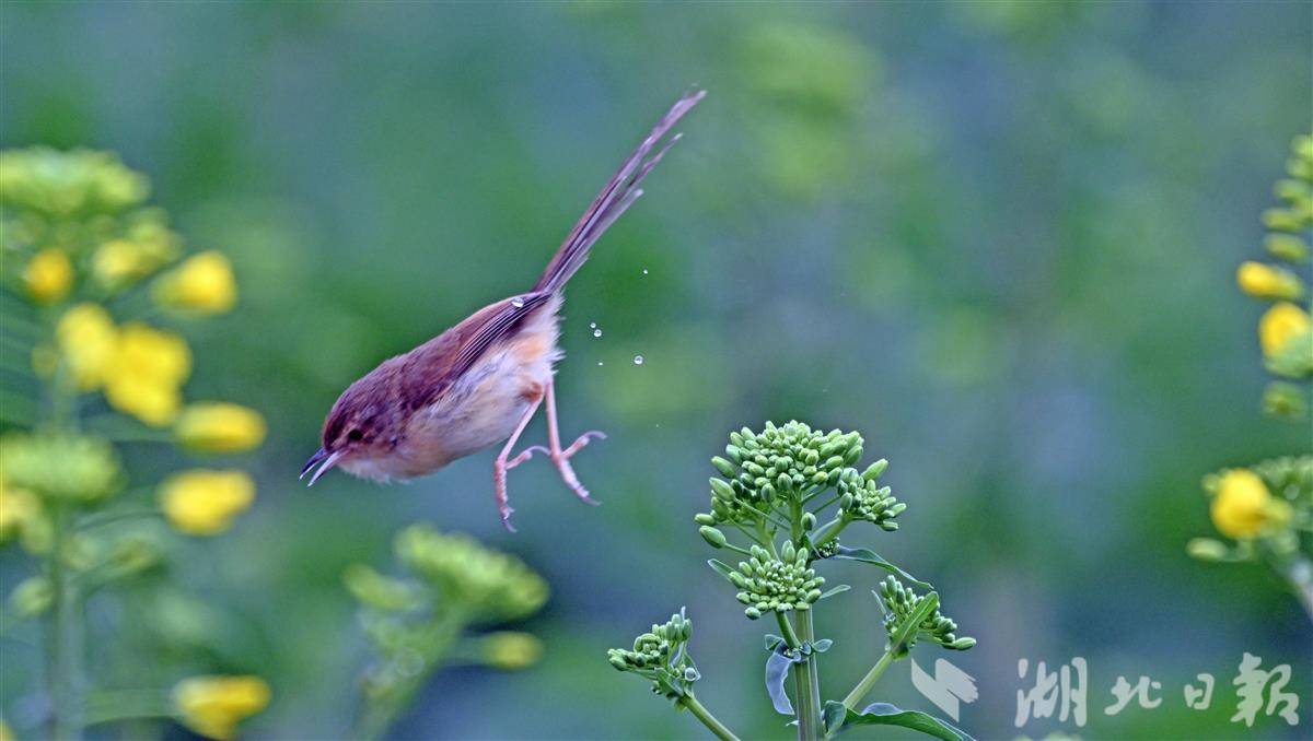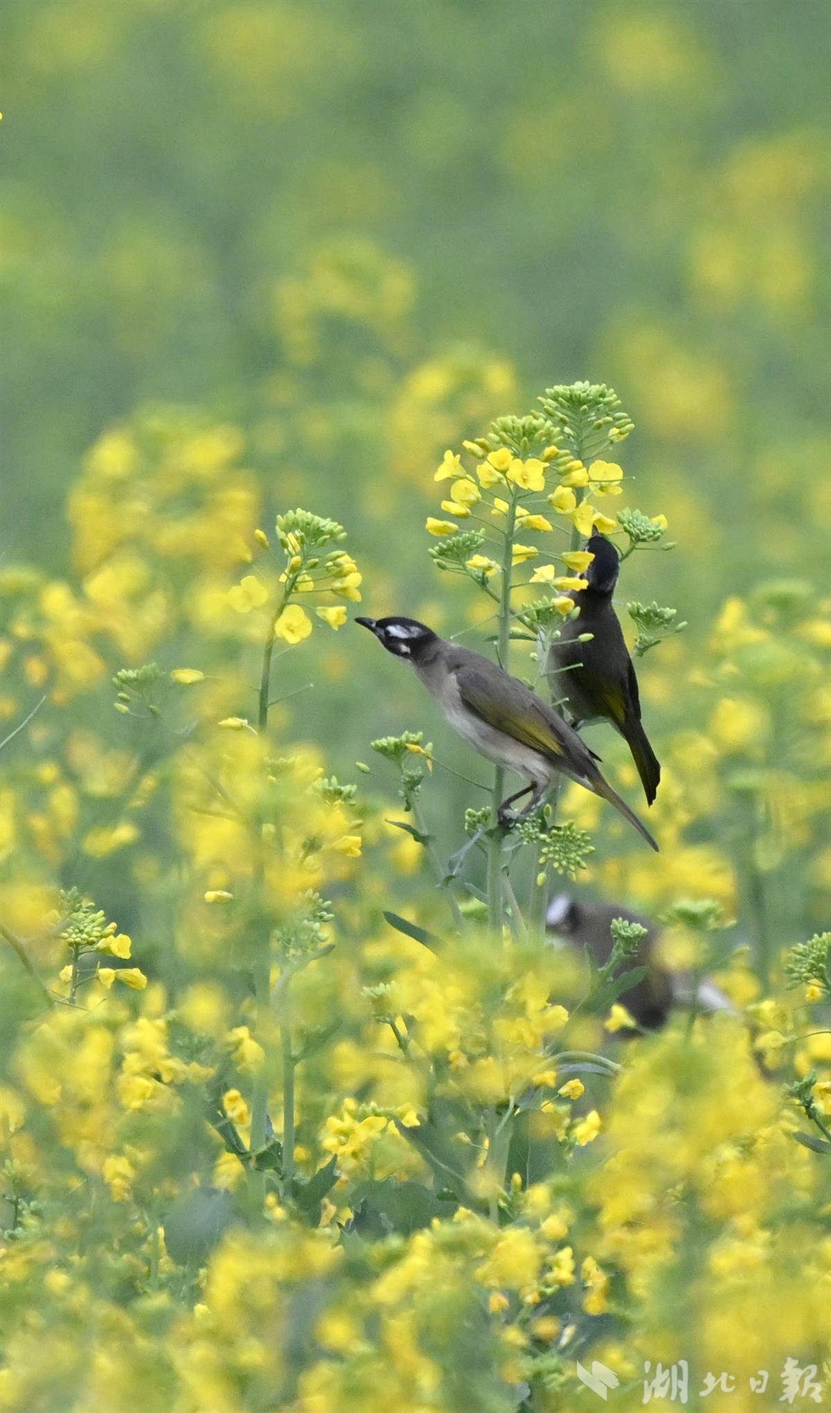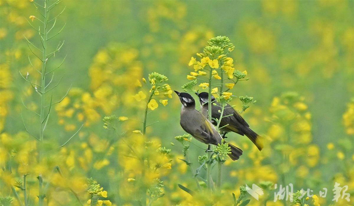 清晨时分,薄雾尚未散尽,各类小鸟翩跹而至,在金黄的油菜花间穿梭嬉戏、婉转啼鸣,清脆的鸟鸣与淡淡的花香交织在一起,构成一首悦耳的春日生态乐章。(湖北日报全媒记者刘曙松摄)