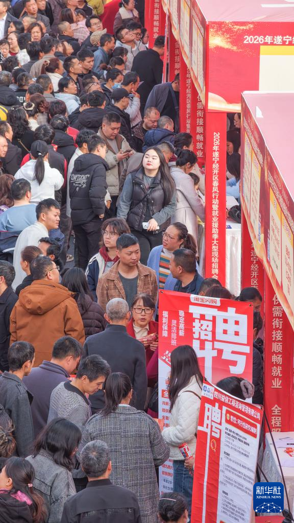 2月24日,求职者在四川省遂宁经开区首场“春风行动”大型招聘会现场浏览岗位信息。