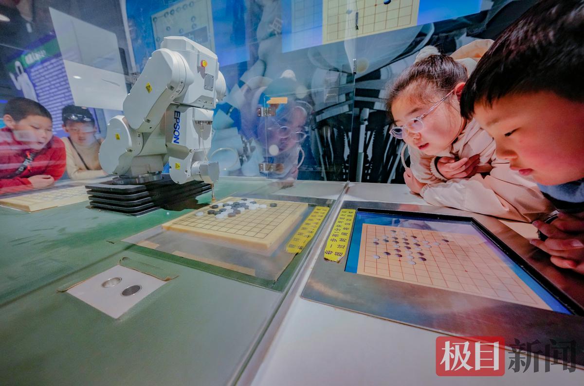 2月27日,武汉科技馆一台机器人忙着与来几名小朋友同时下围棋、走象棋,小朋友们感觉能挑战机器人下棋,大呼有趣;戴着VR眼镜“抚摸恐龙”,小朋友感觉好奇妙。寒假期间,在武汉,科技馆成为不少家庭“遛娃+充电”的热门选择,馆内丰富多彩的科技展区和趣味科普活动,有利于青少年开启一趟奇妙的科学探索之旅。孩子们穿梭于不同主题展厅,通过互动体验理解自然与科技,探寻深海奥秘,感受宇宙浩瀚,踏上一场寒假奇妙的科学探索之旅。