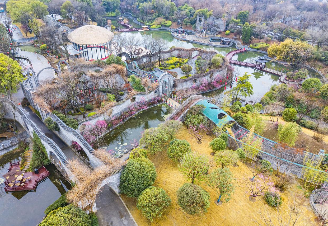 2月27日拍摄的位于江苏省扬州市江都区丁伙镇的朴园春色(无人机照片)。新华社发(任飞摄)