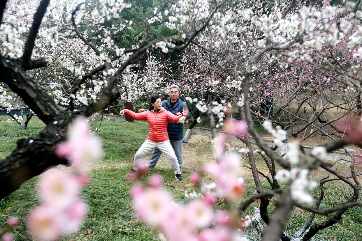 2月27日,市民在江苏省连云港市连云区的公园中打拳。新华社发(王春摄)