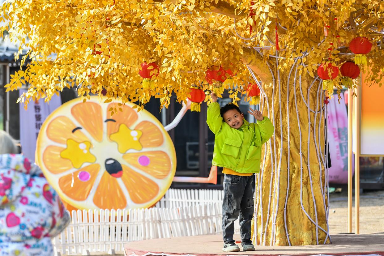 2月25日,游客在山西太原古县城参加趣味活动。新华社记者 曹阳 摄