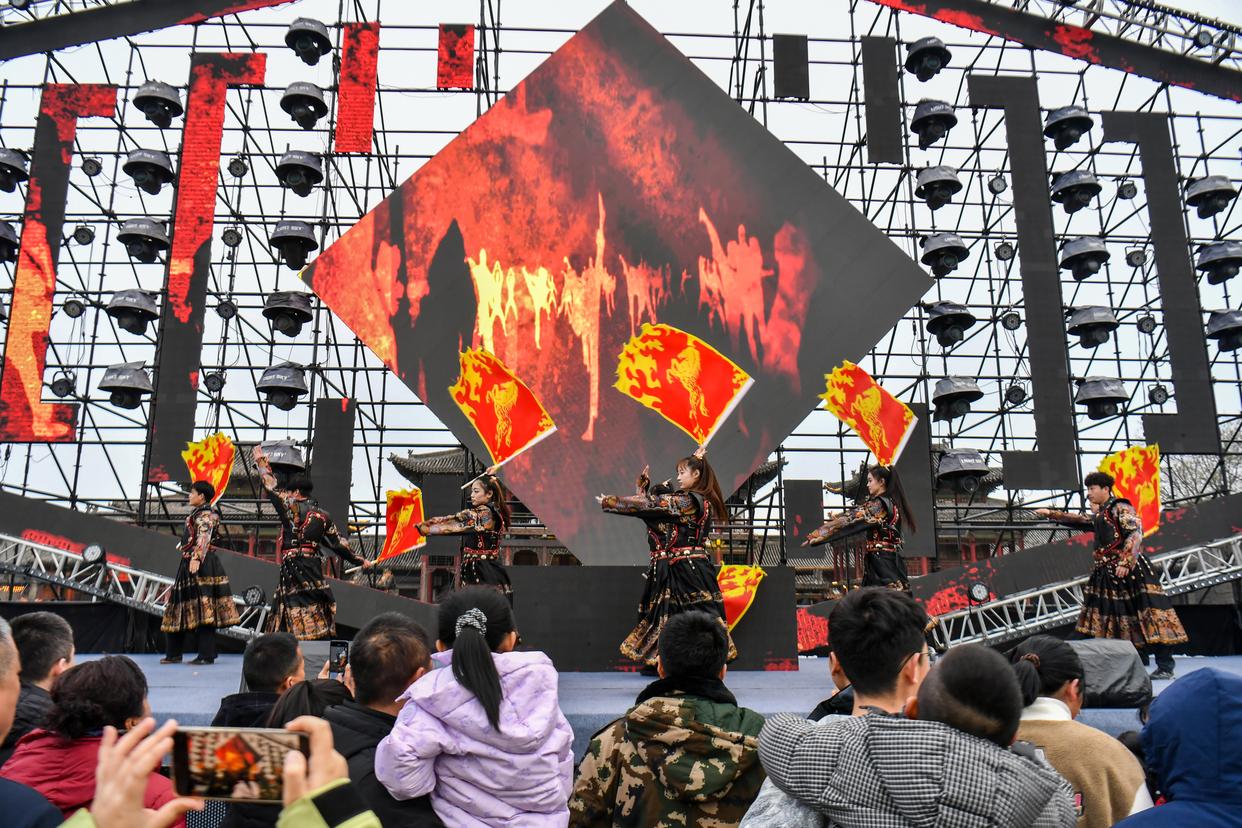 这是2月27日在山西省晋中市平遥古城拍摄的文艺表演。新华社记者 曹阳 摄