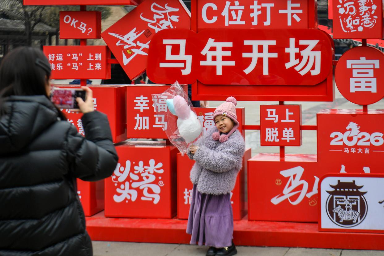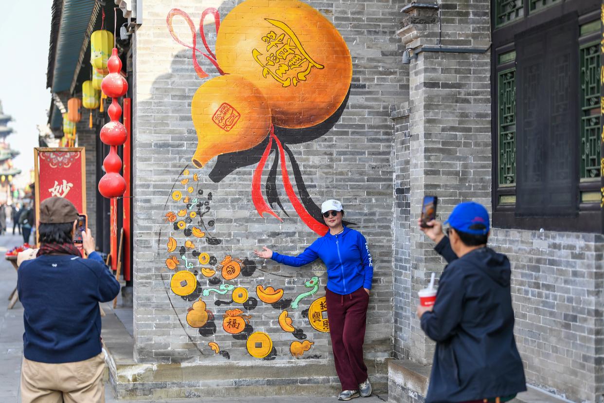 2月25日,游客在山西太原古县城拍照留念。新华社记者 曹阳 摄