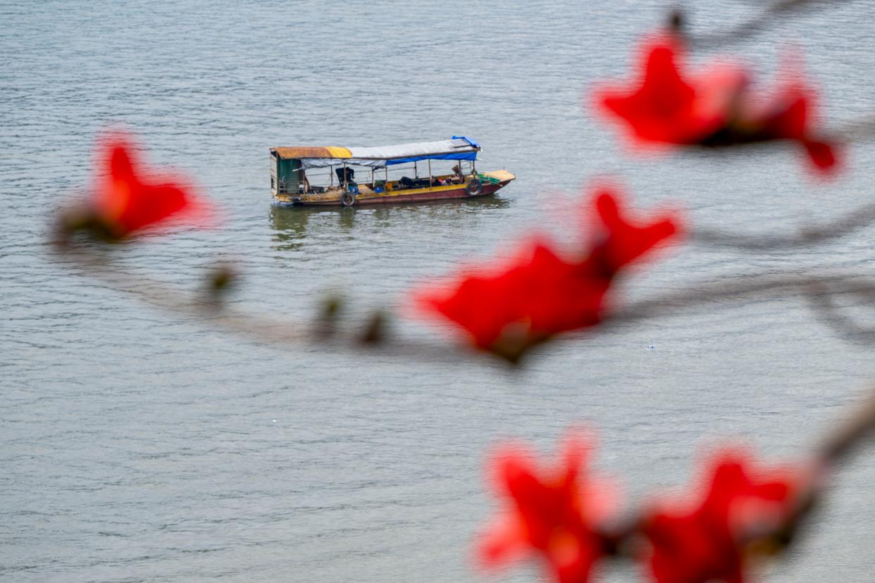 这是2月27日在广西梧州市西江水域拍摄的木棉花。新华社发(何华文摄)
