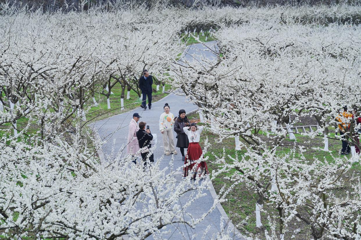 2月28日,人们在重庆市北碚区静观镇欣赏盛开的李花。新华社发(秦廷富摄)
