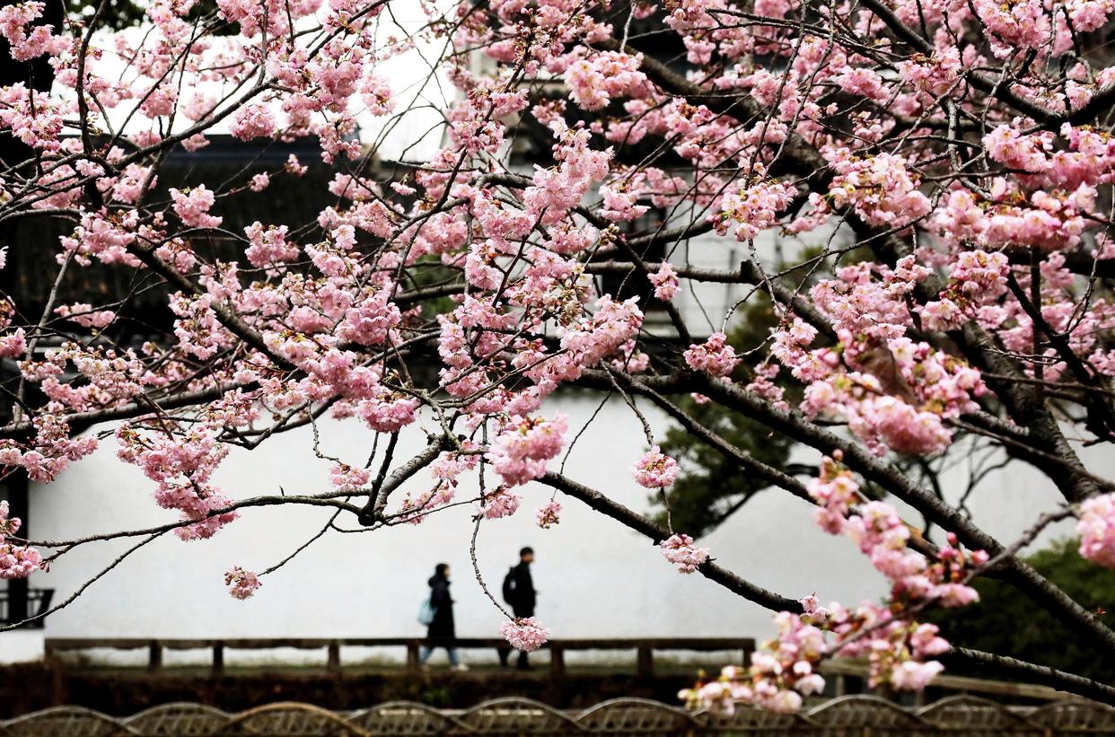 3月2日,游客在江苏省苏州市拙政园赏樱游玩。新华社发(杭兴微摄)