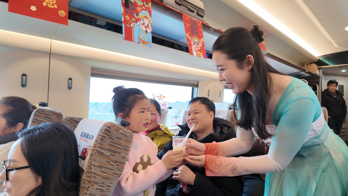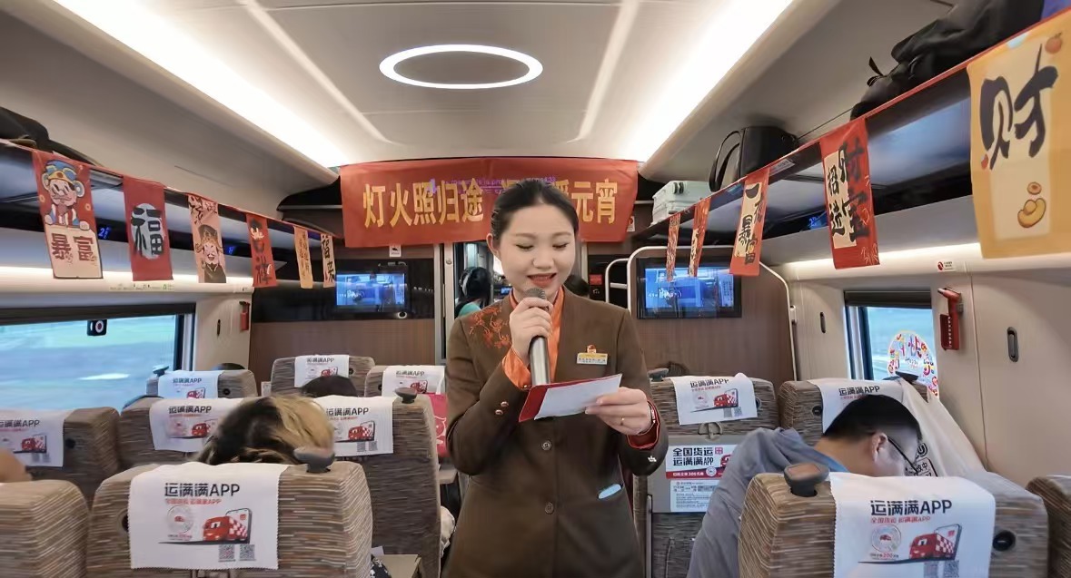 3月3日,在奔驰的G6854次列车上,武铁武汉客运段“凤舞楚天”乘务组举办了“温馨旅途·元宵联欢”主题活动,让旅客的出行体验倍感温馨。