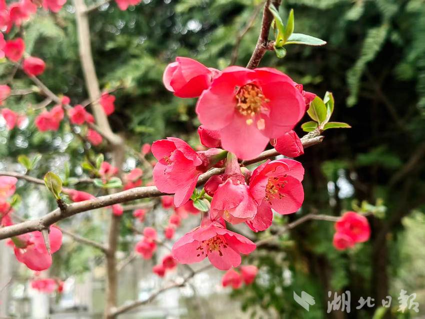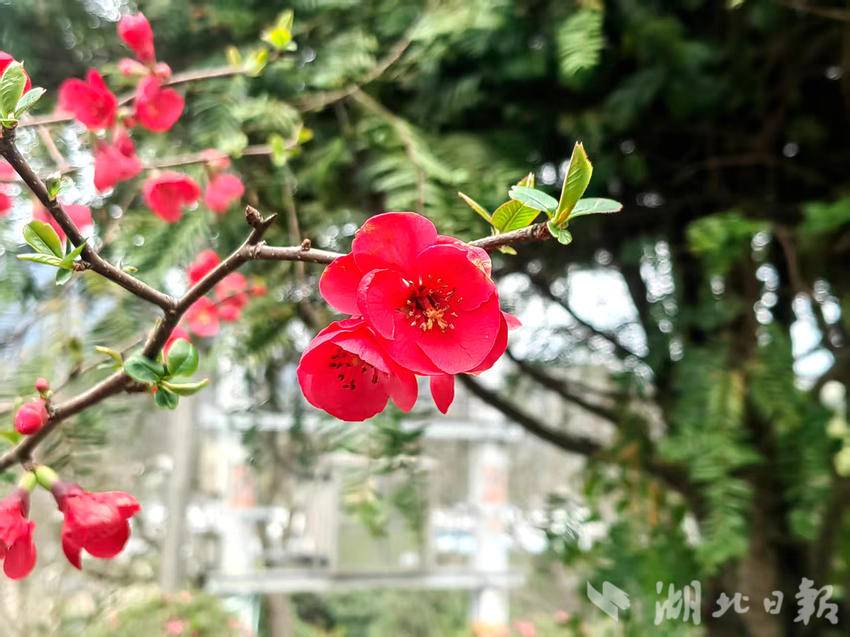 湖北日报客户端讯(通讯员胡自丹、唐和)3月3日,农历正月十五,正值元宵佳节,恩施市白杨坪镇麂子渡村的春风里裹挟着盎然生机。在乡村公路旁、农家院落边,一树树贴梗海棠迎来盛花期,为春日乡村披上了艳丽的红装。