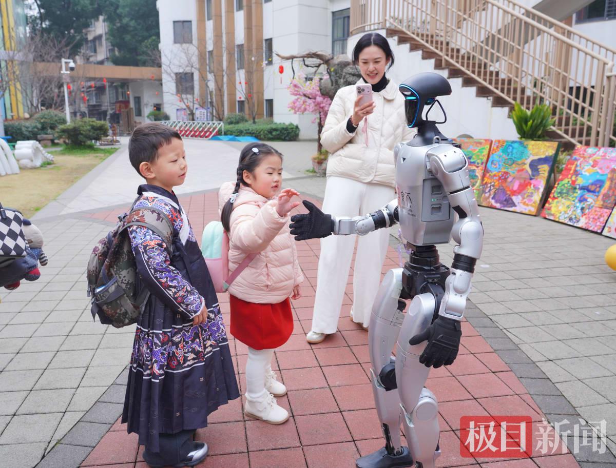 春启新程,逐光而行。3月4日,新学期第一天,湖北省直机关第二幼儿园为全体萌娃送上一份特殊的开学惊喜——宇树人形机器人和智能机器狗“新伙伴”,用一场充满童趣的科技互动,开启新学期的快乐旅程。