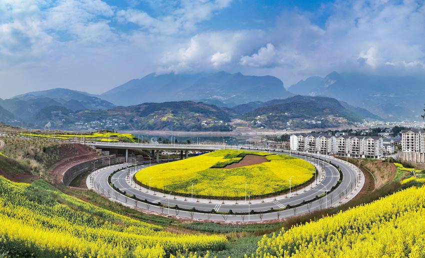 这股春意,也传到了老百姓的家门口。高铁新区周边,一栋栋具有巴东特色的民居被油菜花海围着。推开门就是景,走出去就像进了公园。金色的花海和白墙黛瓦的房子配在一起,看着格外舒坦。村里人在田里忙活,或者在花间走走转转,日子过得自在。