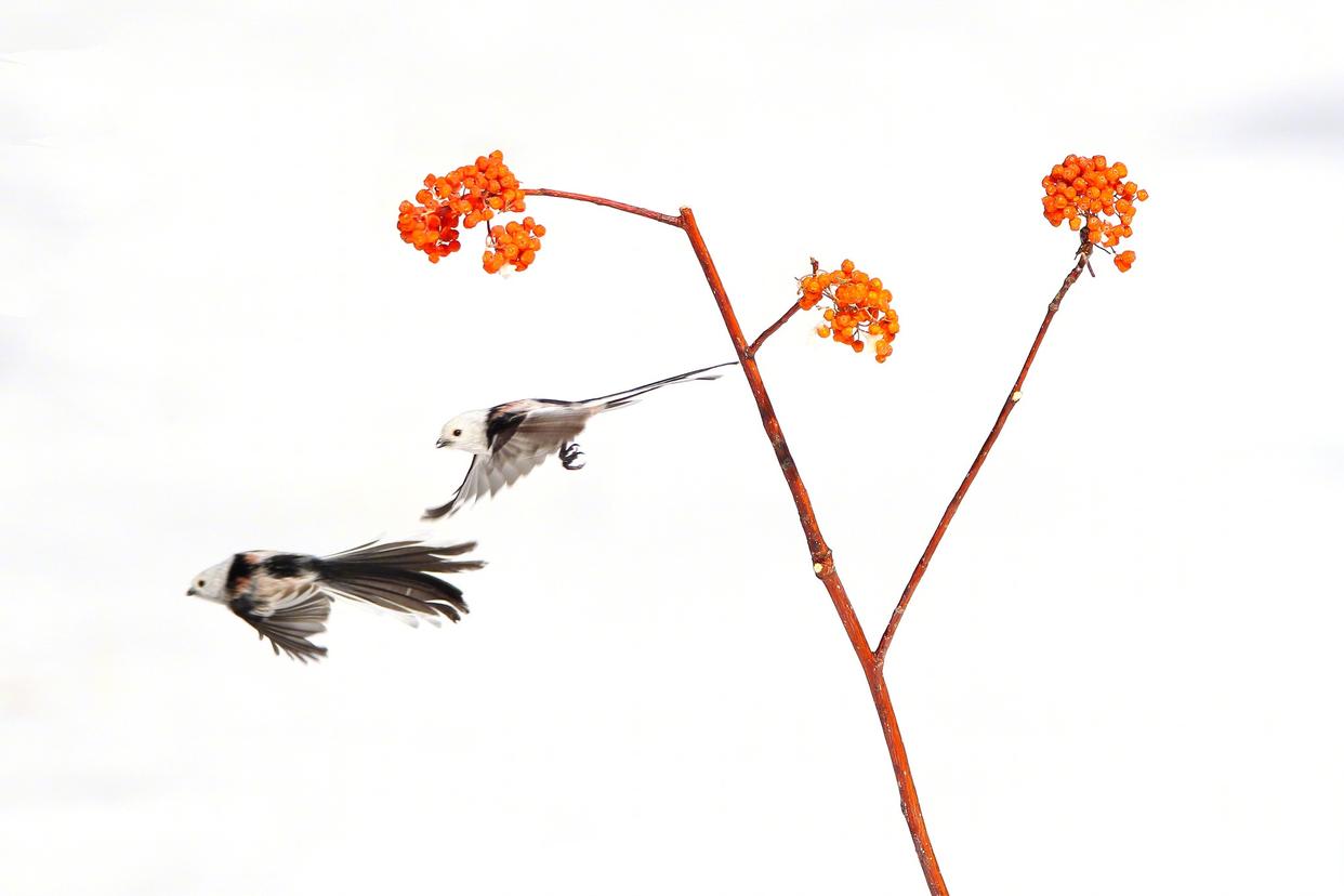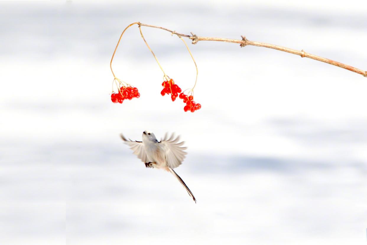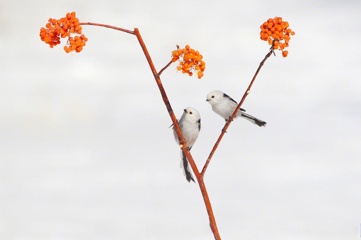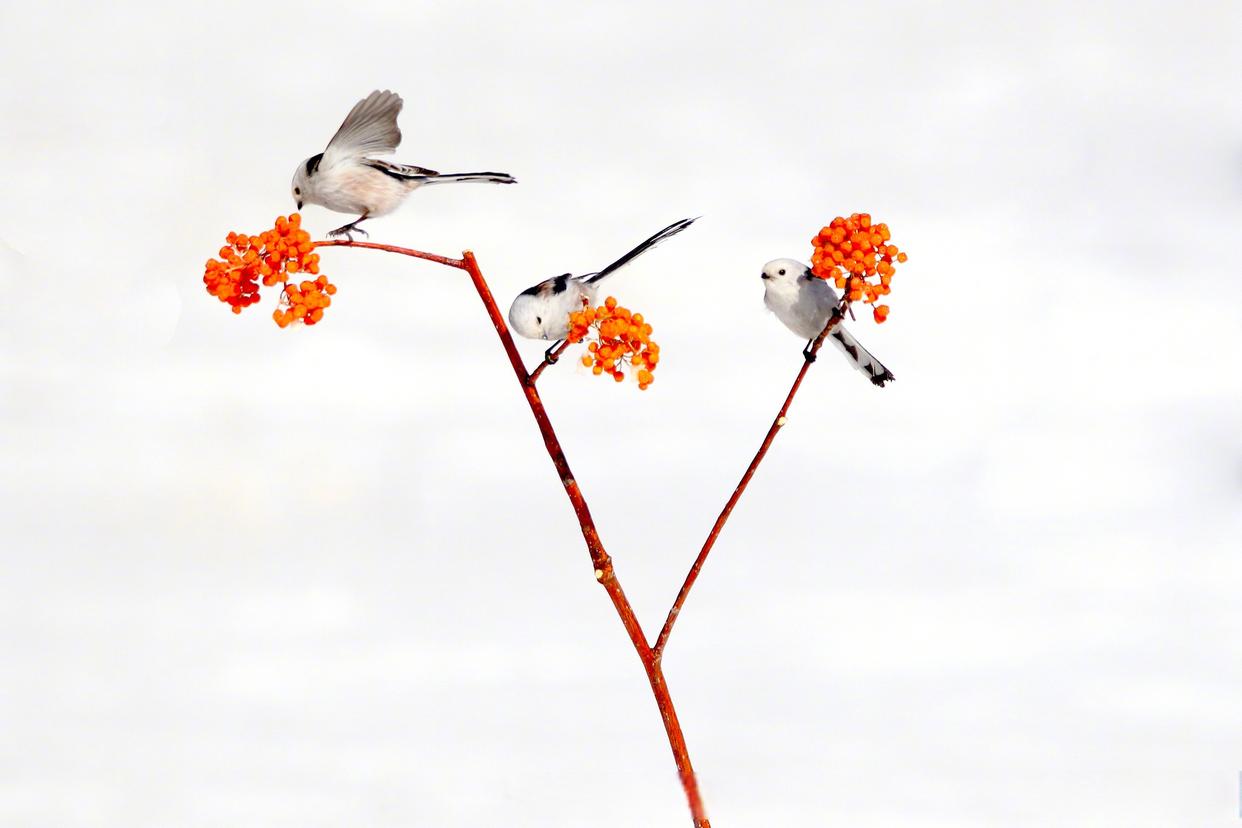 雪地小鸟嬉戏图好可爱 近日,黑龙江大庆城市森林公园雪地林间,小鸟在枝头嬉戏,画面灵动可爱。网友:好像是花鸟图照进了现实!