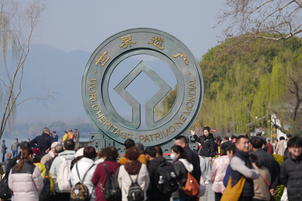 3月11日,游客在西湖景区涌金广场游览。新华社记者 黄宗治 摄