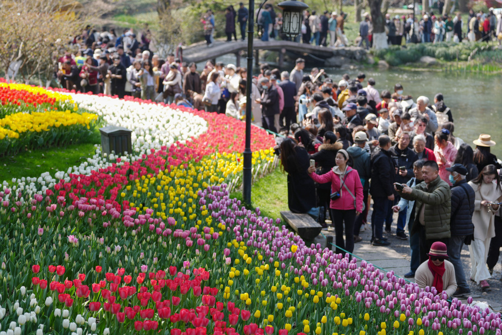 连日来,杭州西湖风景区鲜花绽放,春意盎然,游人如织。