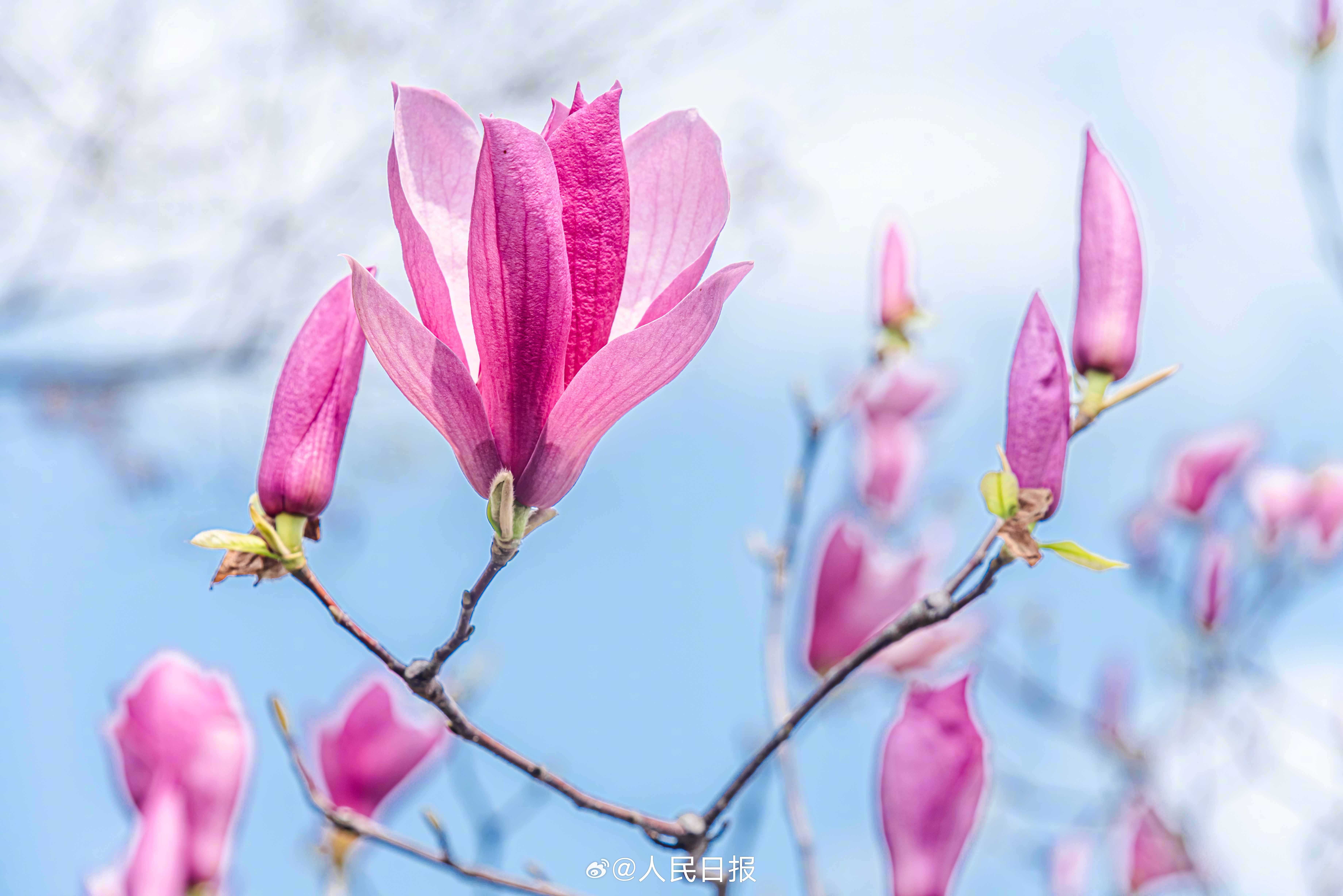 3月10日,江西赣州,玉兰花在蓝天的映衬下芬芳多姿,美丽醉人。转存收藏!