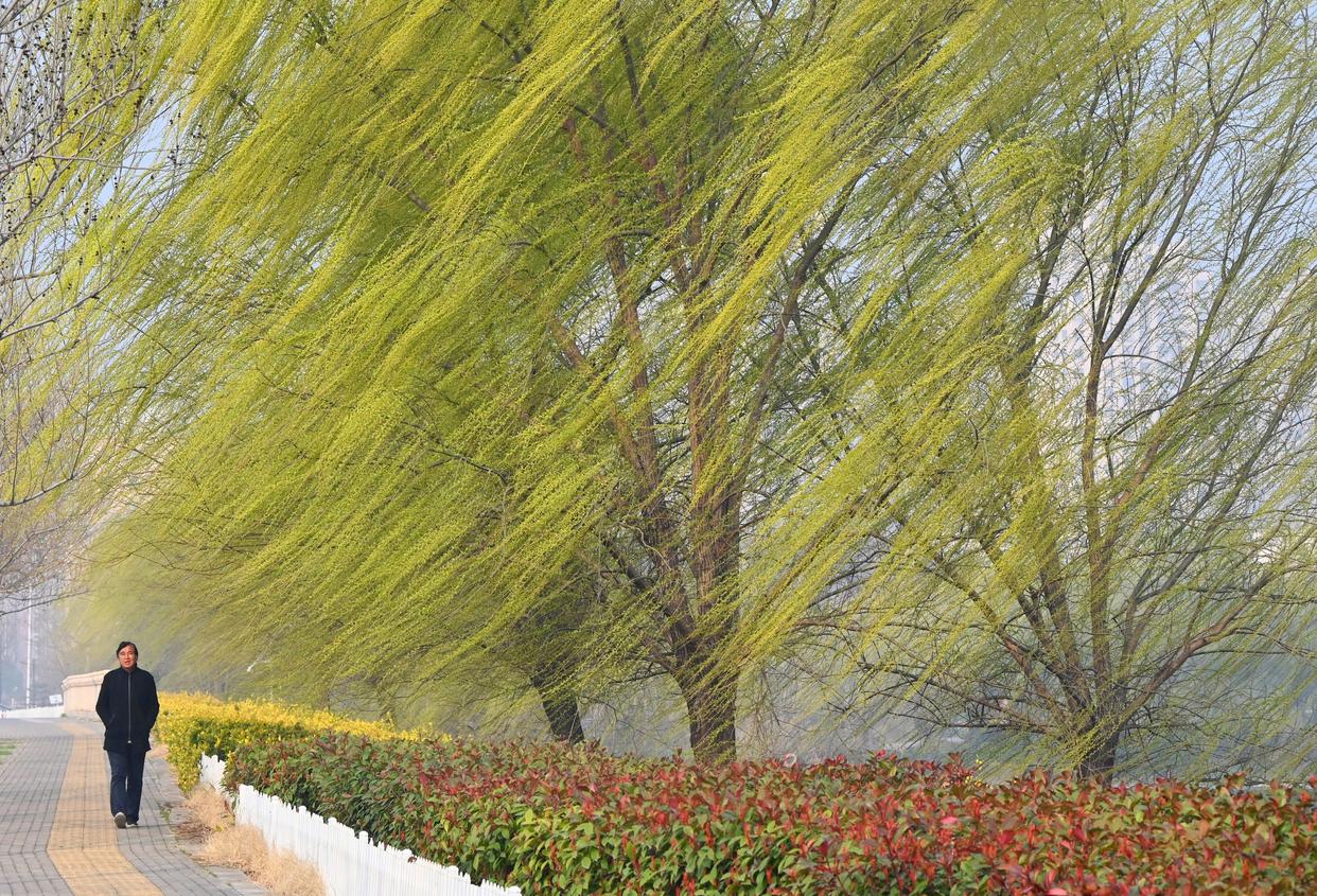 3月12日,市民从河南省开封市黑岗口调蓄水库旁边走过。新华社发(李俊生摄)
