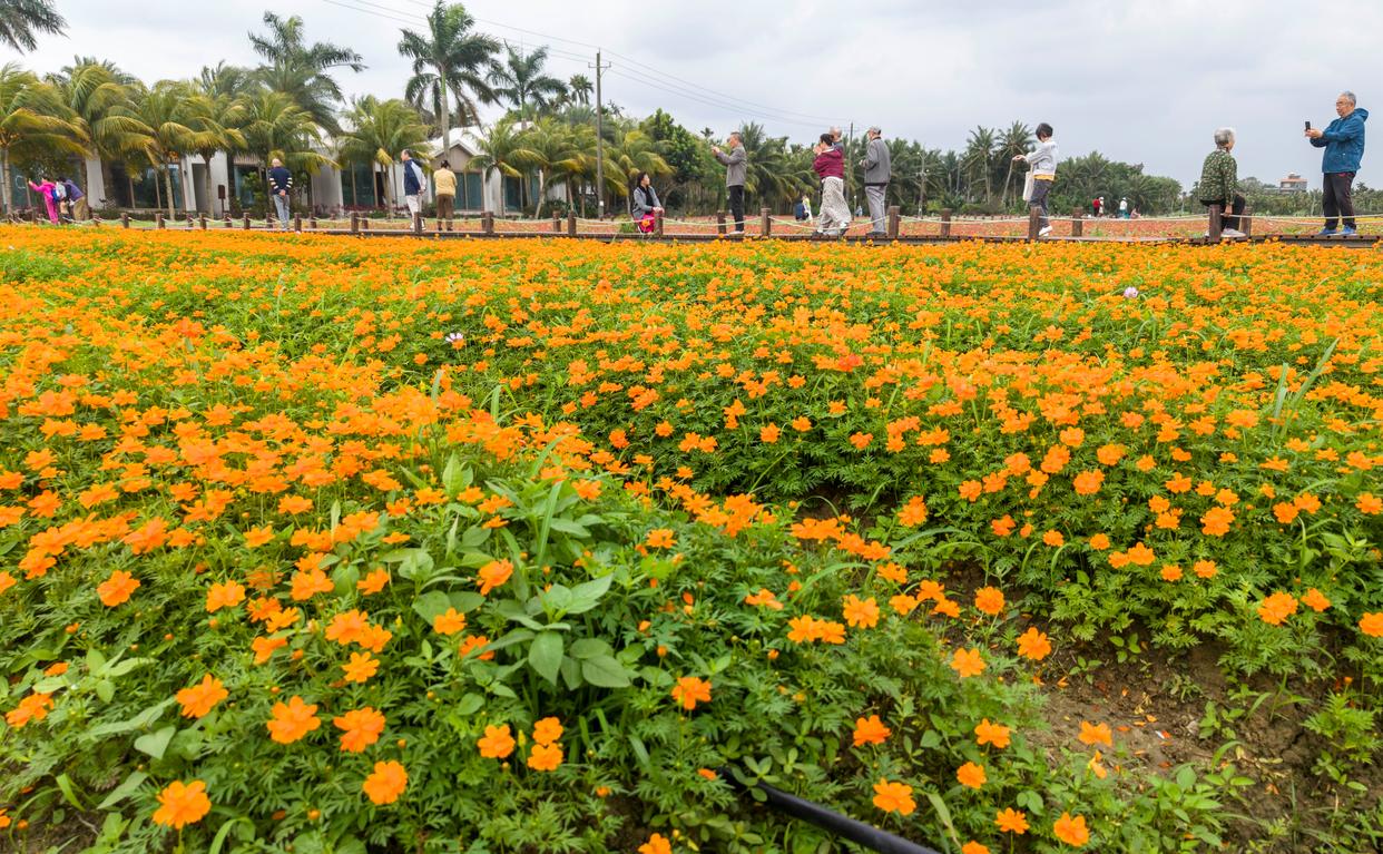 3月12日,游人在海南省琼海市博鳌镇大路坡村花海踏青赏花。新华社发(蒙钟德摄)