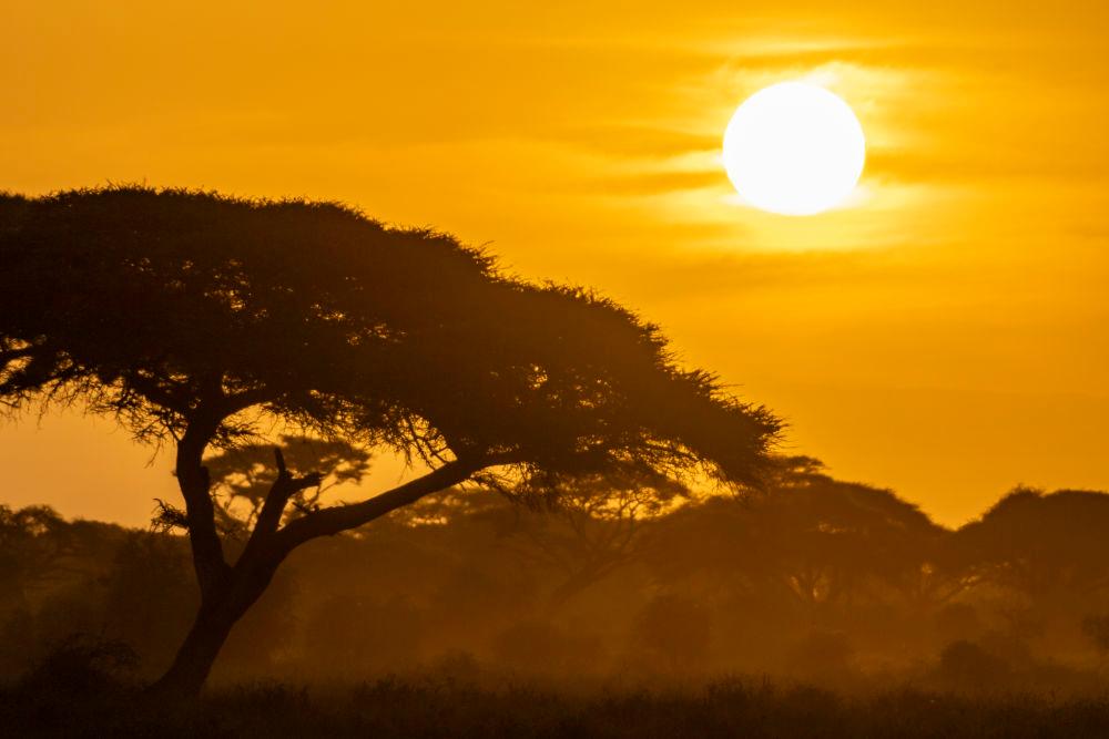 ↑这是肯尼亚安博塞利国家公园的日出景观(1月8日摄)。